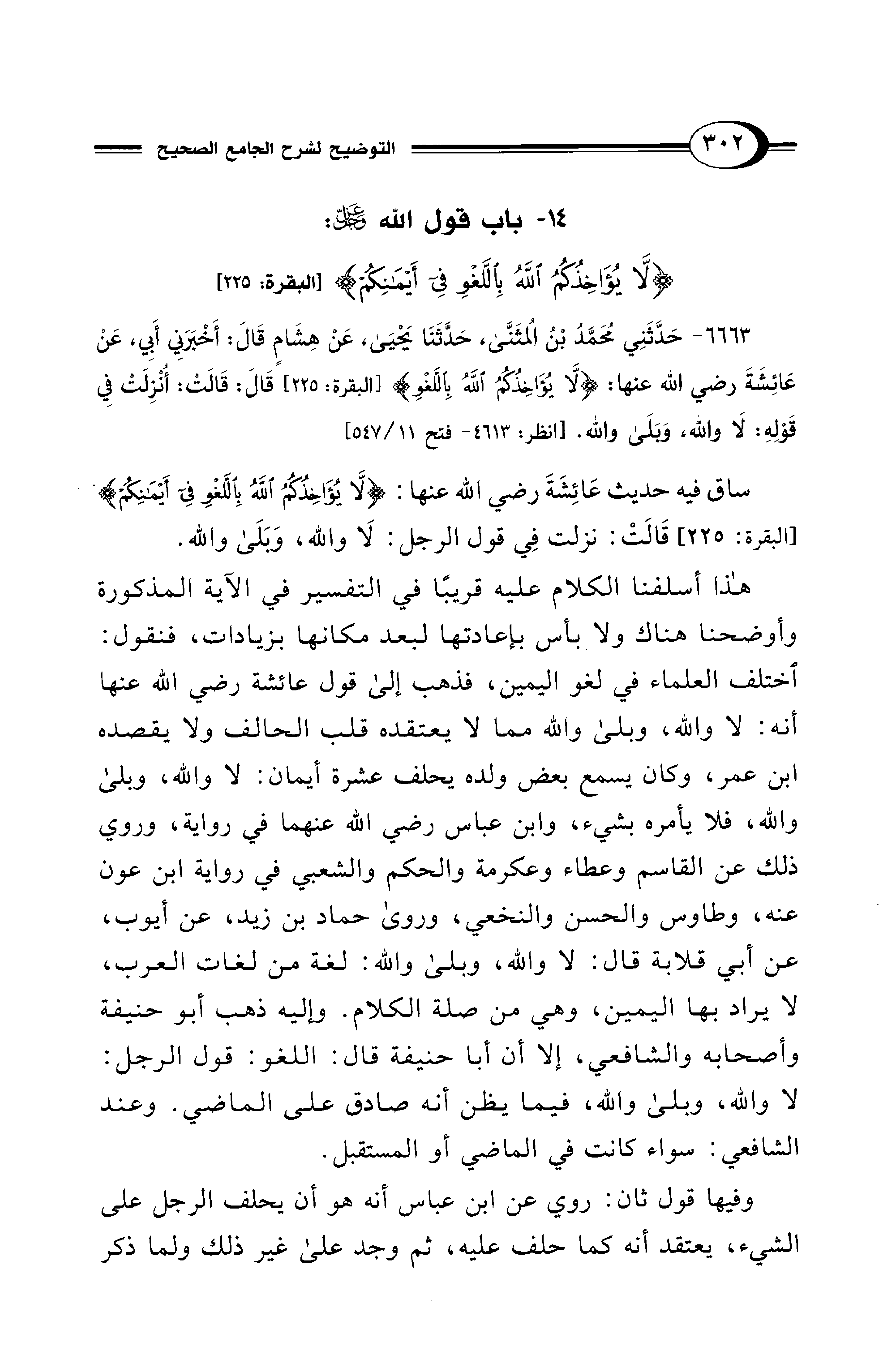 14 - باب قول الله -عَزَّ وَجَلَّ-: {لاَ يُؤَاخِذُكُمُ اللهُ بِاللَّغْوِ فِي أَيْمَانِكُمْ} [البقرة: 225]