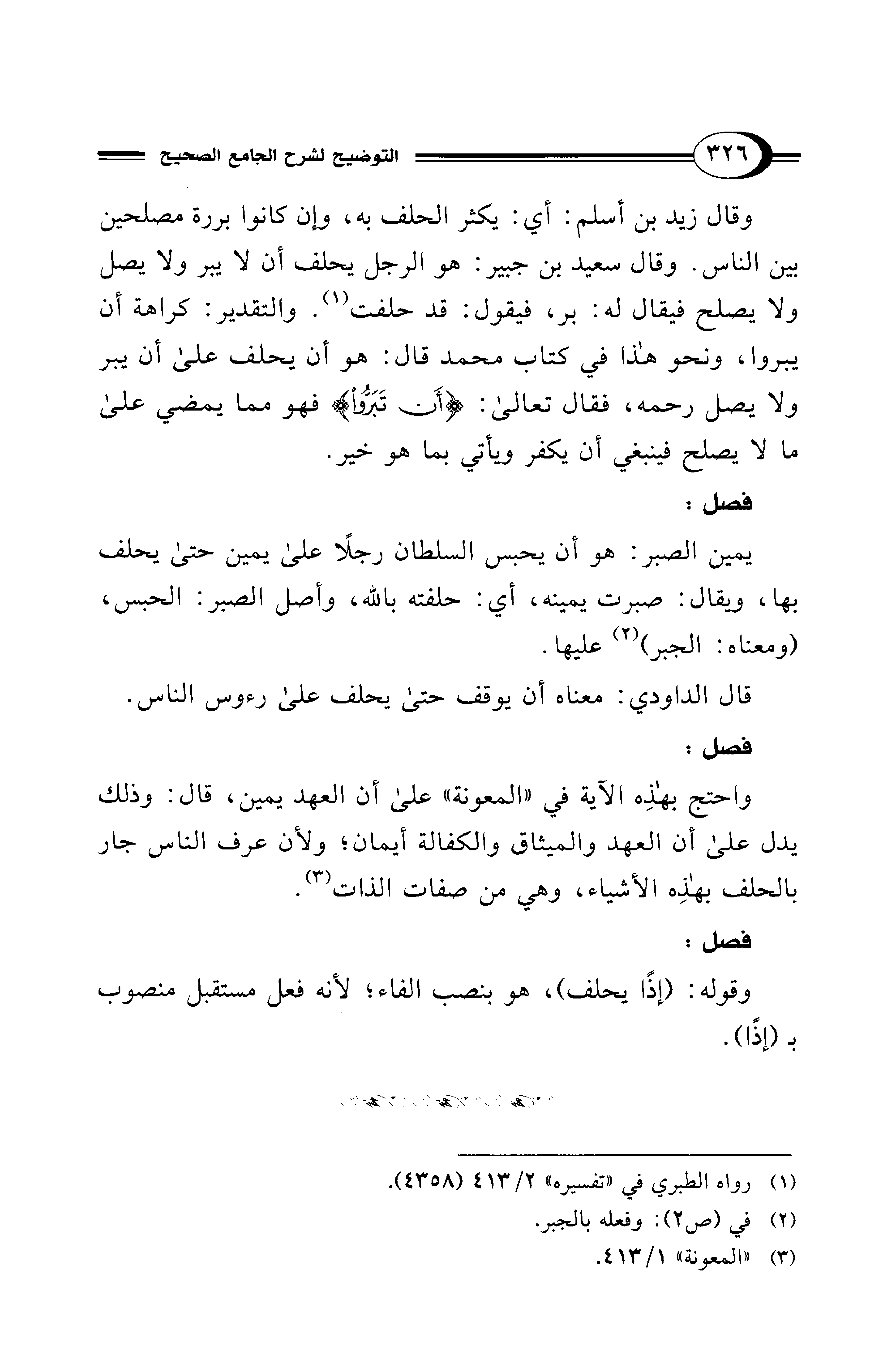 وقال زيد بن أسلم: أي: يكثر الحلف به، وإن كانوا بررة مصلحين بين الناس. وقال سعيد بن جبير: هو الرجل يحلف أن لا يبر ولا يصل ولا يصلح فيقال له: بر، فيقول: قد حلفت (¬1). والتقدير: كراهة أن يبروا، ونحو هذا في كتاب محمد قال: هو أن يحلف على أن يبر ولا يصل رحمه، فقال تعالى: {أَنْ تَبَرُّوا} فهو بما يمضي على ما لا يصلح فينبغي أن يكفر ويأتي بما هو خير.