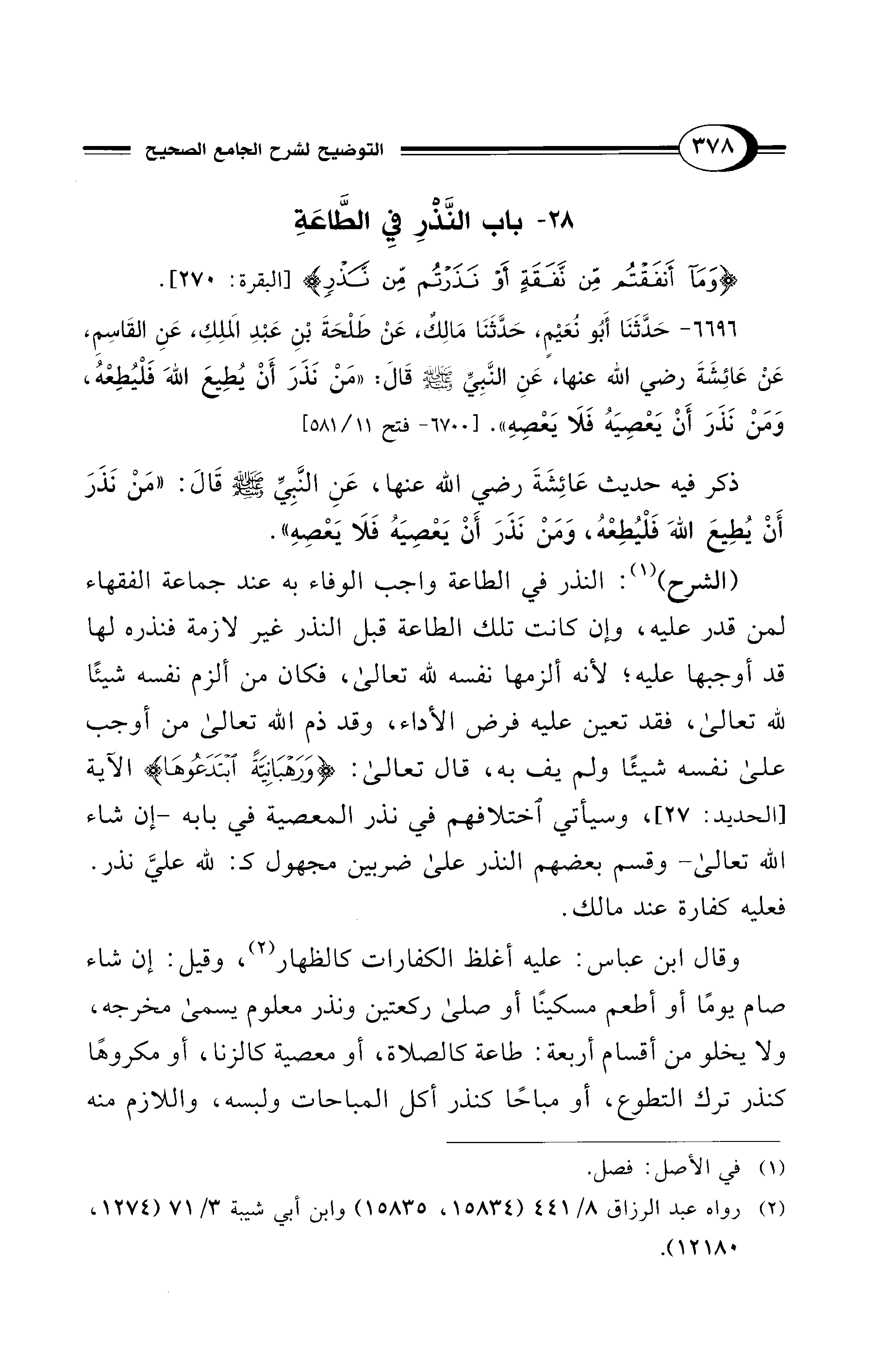 28 - باب النَّذْرِ فِي الطَّاعَةِ