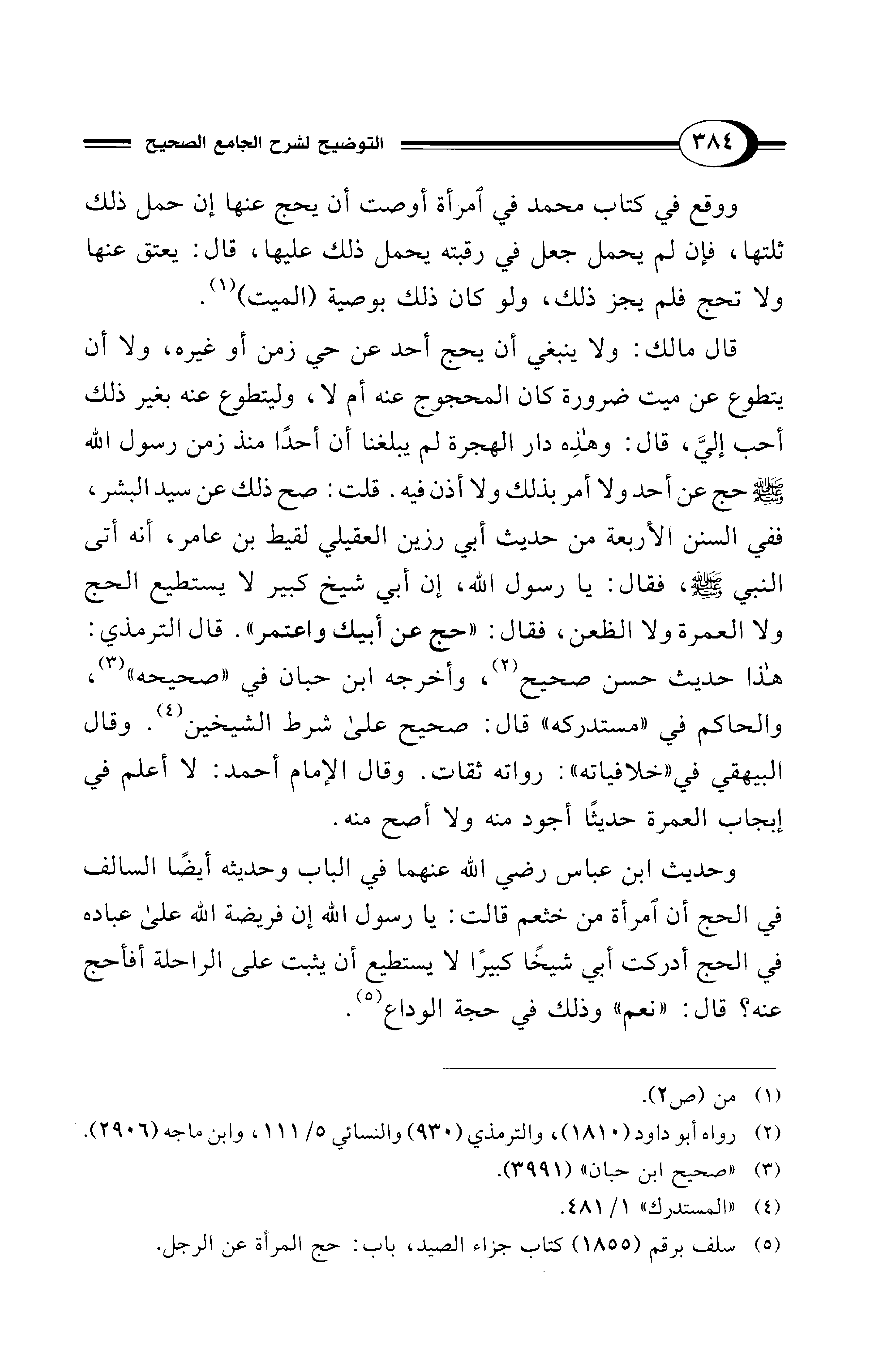 (¬2) رواه أبو داود (1810)، والترمذي (930) والنسائي 5/ 111، وابن ماجه (2906).
