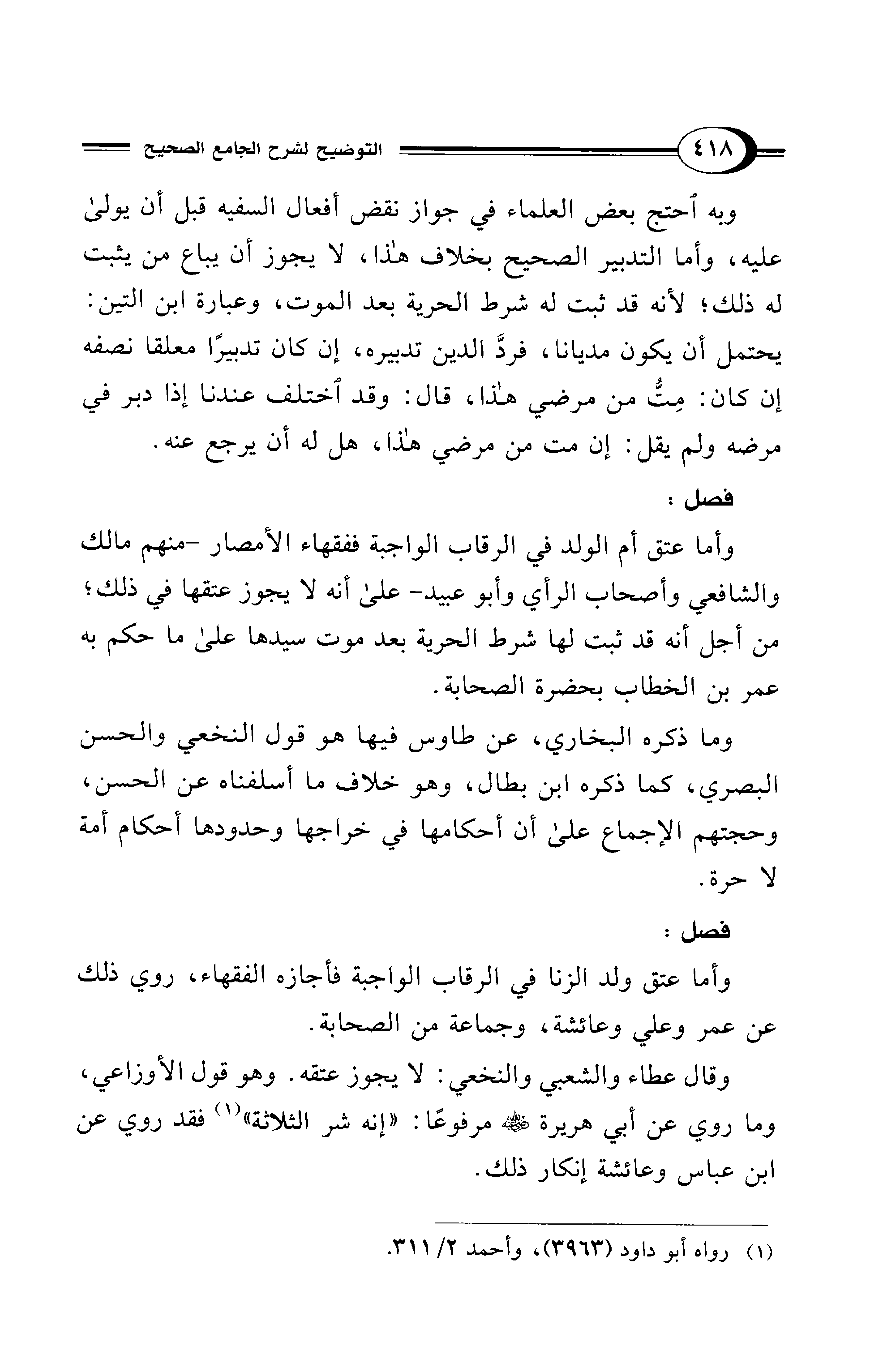 وما ذكره البخاري، عن طاوس فيها هو قول النخعي والحسن البصري، كما ذكره ابن بطال، وهو خلاف ما أسلفناه عن الحسن، وحجتهم الإجماع على أن أحكامها في خراجها وحدودها أحكام أمة لا حرة.