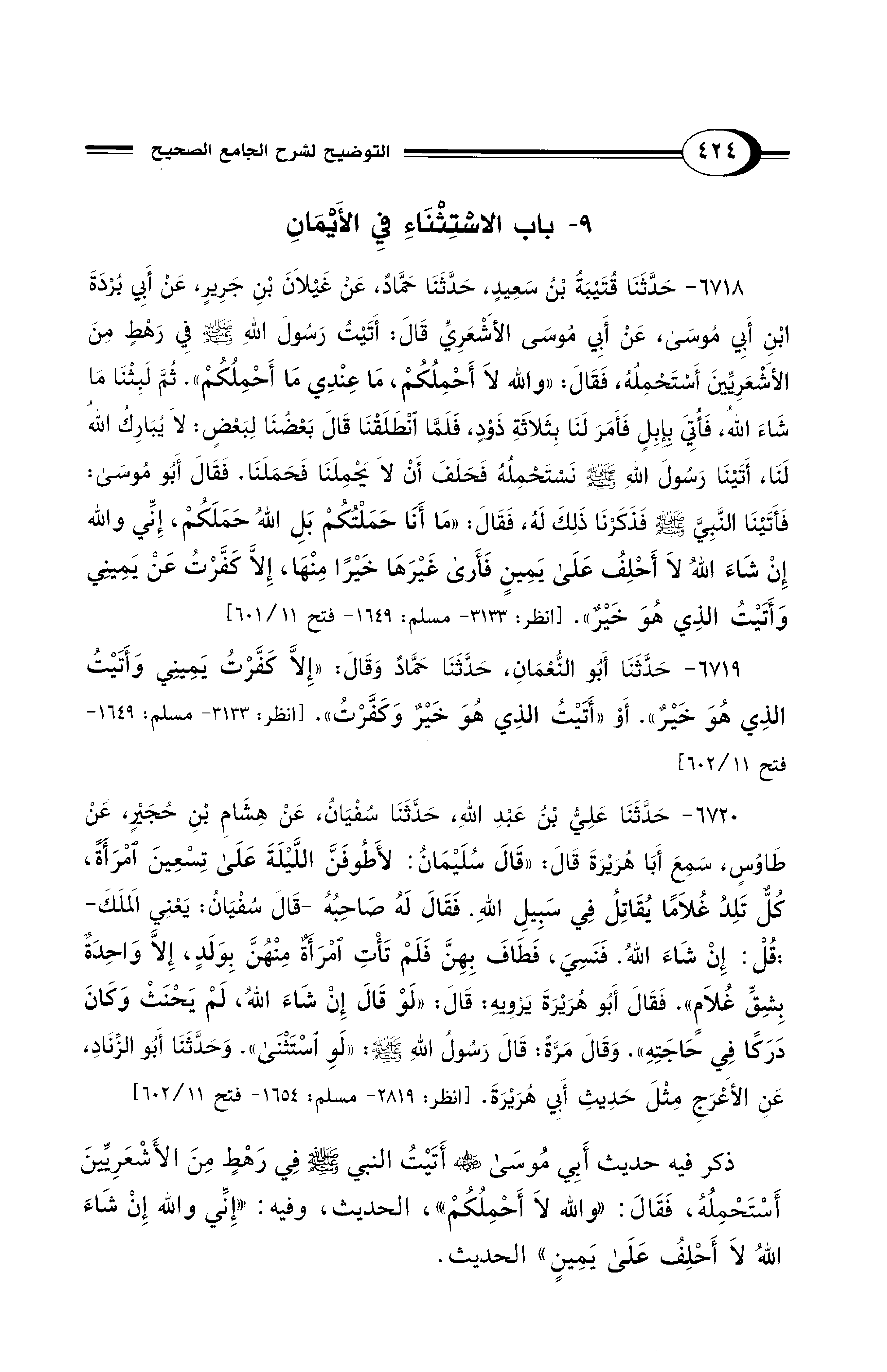 9 - باب الاِسْتِثْنَاءِ فِي الأَيْمَانِ