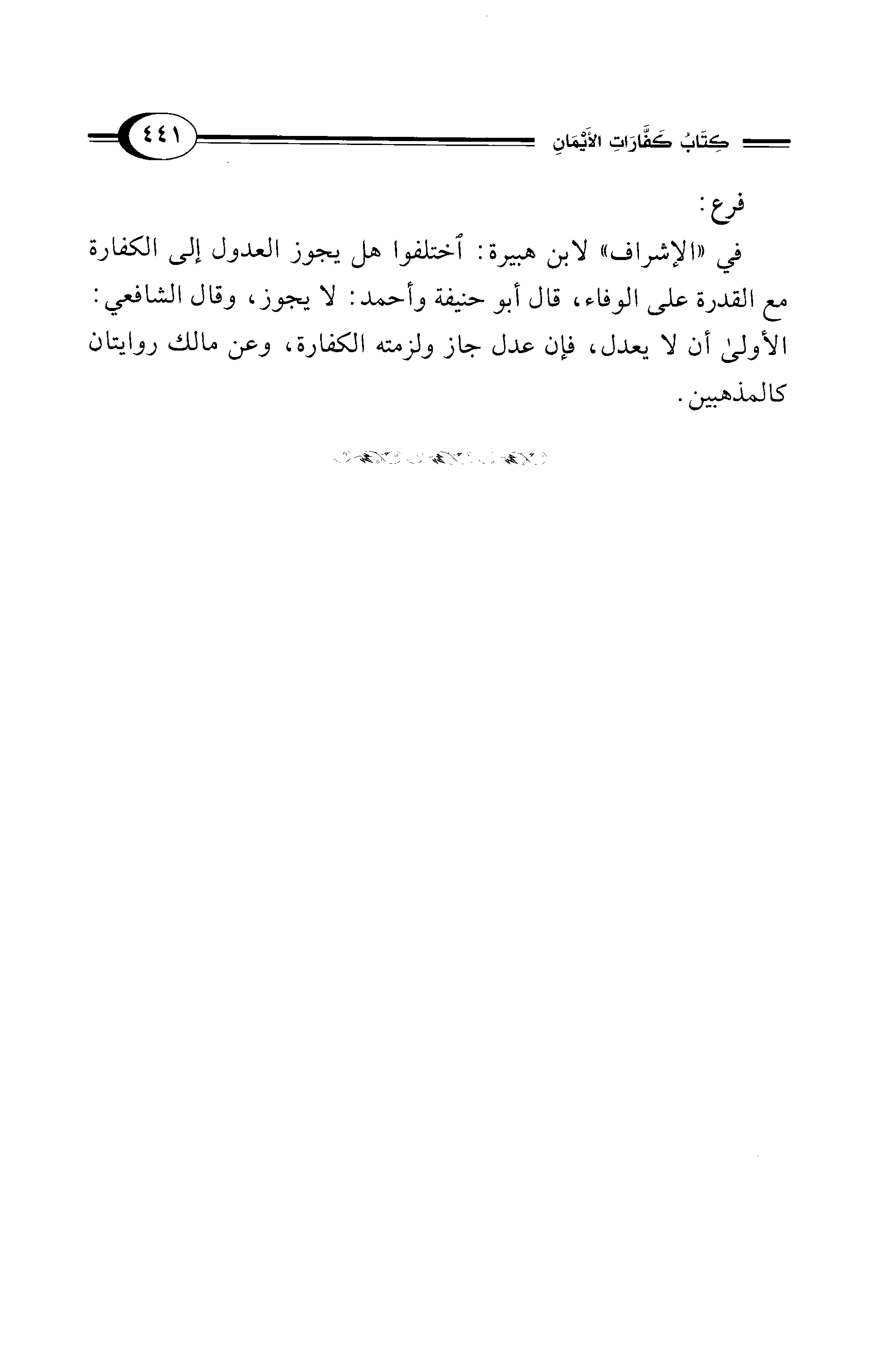 في "الإشراف" لابن هبيرة: اختلفوا هل يجوز العدول إلى الكفارة مع القدرة على الوفاء، قال أبو حنيفة وأحمد؛ لا يجوز، وقال الشافعي: الأولى أن لا يعدل، فإن عدل جاز ولزمته الكفارة، وعن مالك روايتان كالمذهبين.