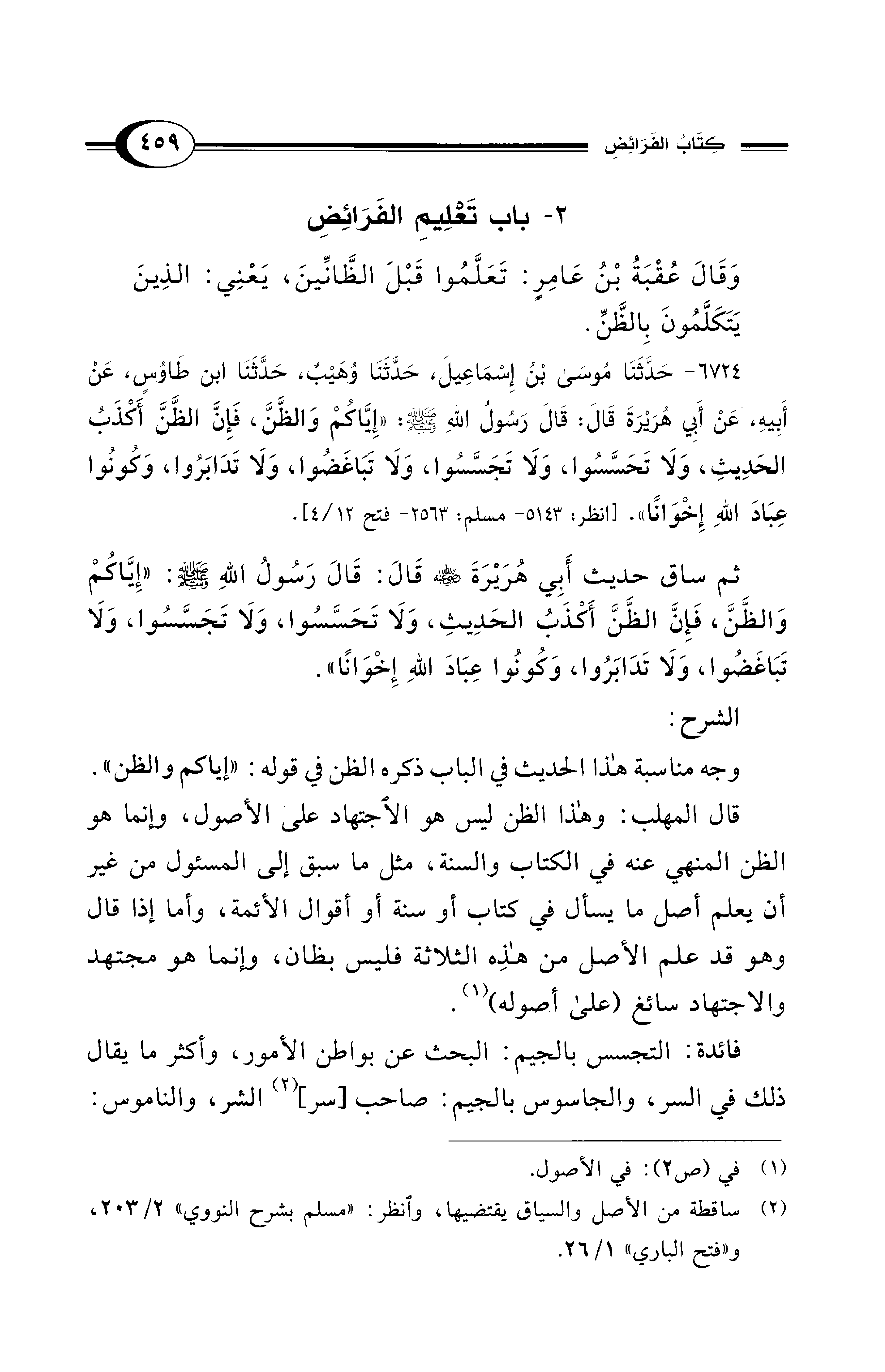2 - باب تَعْلِيمِ الفَرَائِضِ