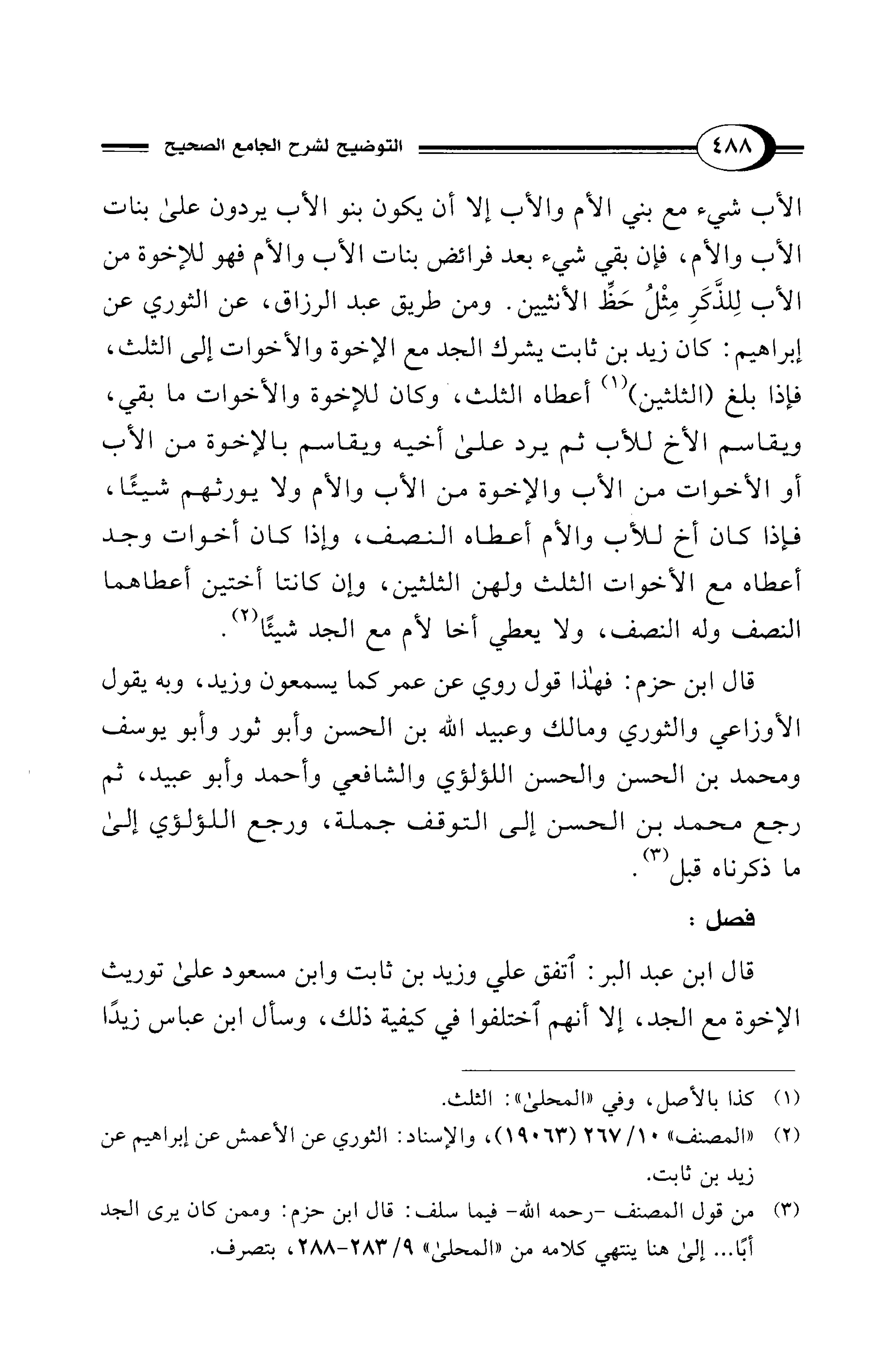 (¬3) من قول المصنف -رحمه الله- فيما سلف: قال ابن حزم: وممن كان يرى الجد أبًا ... إلى هنا ينتهي كلامه من "المحلى" 9/ 283 - 288، بتصرف.