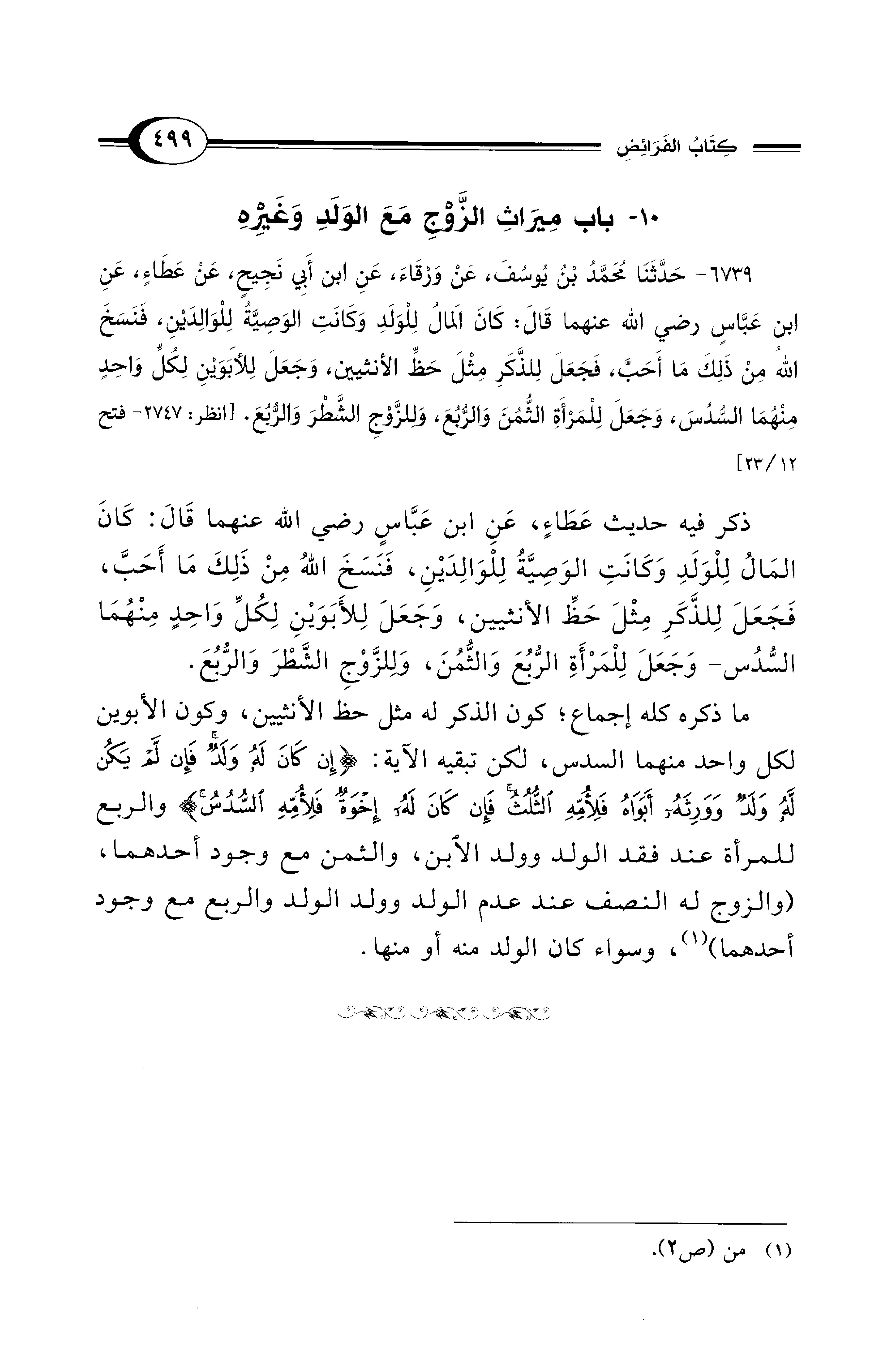 10 - باب مِيرَاثِ الزَّوْجِ مَعَ الوَلَدِ وَغَيْرِهِ
