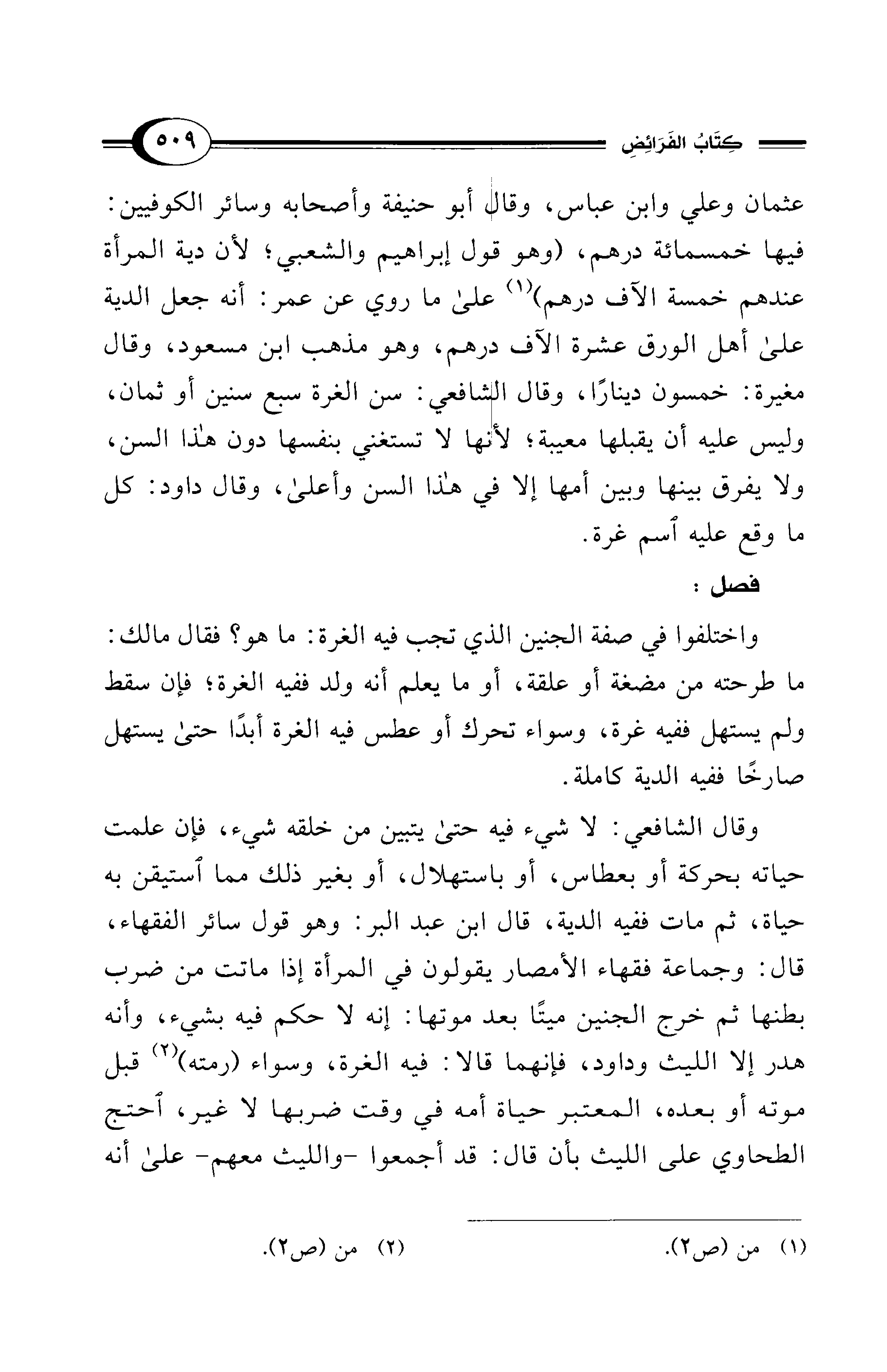 عثمان وعلي وابن عباس، وقالل أبو حنيفة وأصحابه وسائر الكوفيين: فيها خمسمائة درهم، (وهو قول إبراهيم والشعبي؛ لأن دية المرأة عندهم خمسة آلاف درهم) (¬1) على ما روي عن عمر: أنه جعل الدية على أهل الورق عشرة آلاف درهم، وهو مذهب ابن مسعود، وقال مغيرة: خمسون دينارًا، وقال الشافعي: سن الغرة سبع سنين أو ثمان، وليس عليه أن يقبلها معيبة؛ لأنها لا تستغني بنفسها دون هذا السن، ولا يفرق بينها وبين أمها إلا في هذا السن وأعلى، وقال داود: كل ما وقع عليه اسم غرة.
