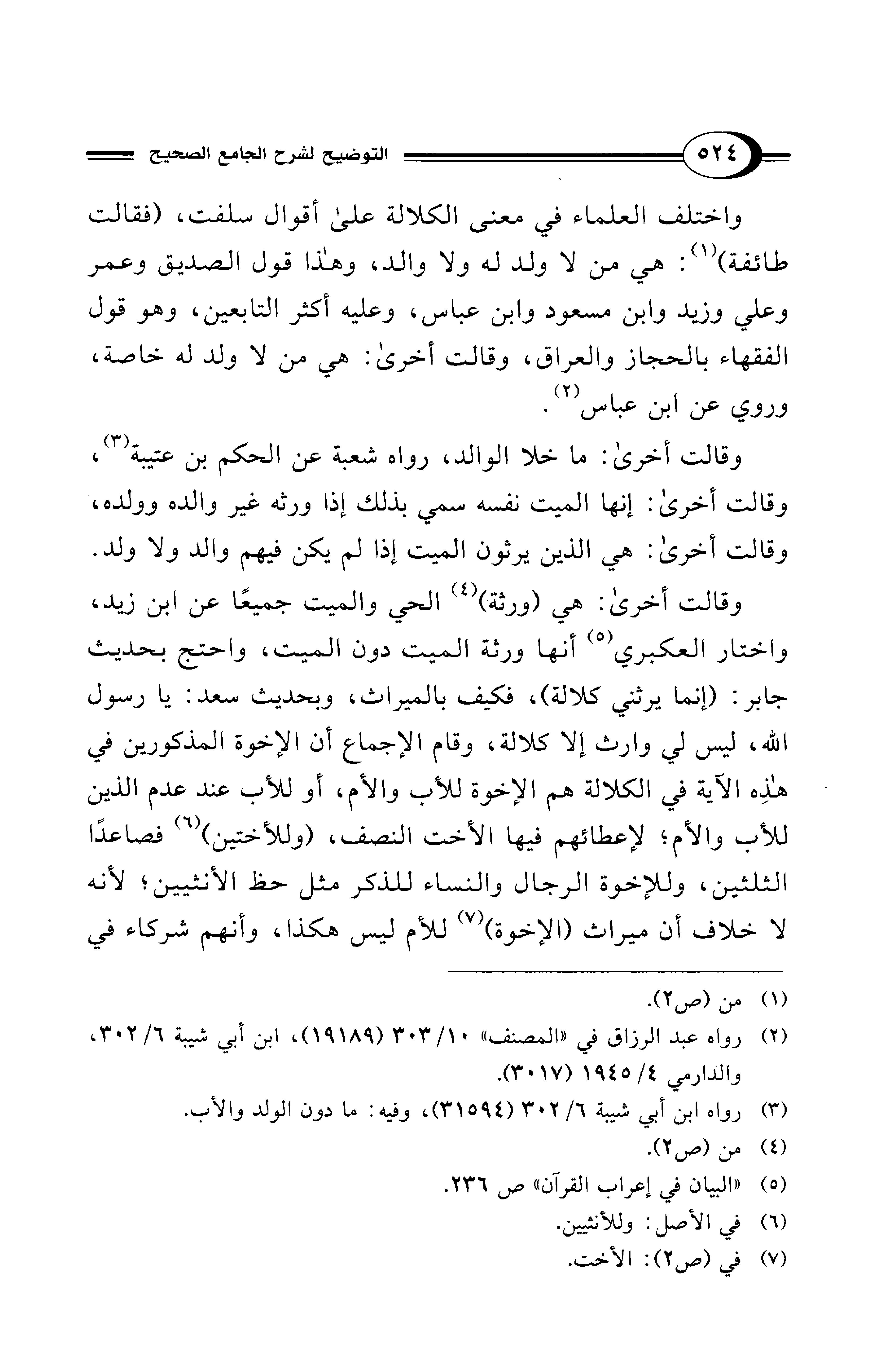 (¬3) رواه ابن أبي شيبة 6/ 302 (31594)، وفيه: ما دون الولد والأب.