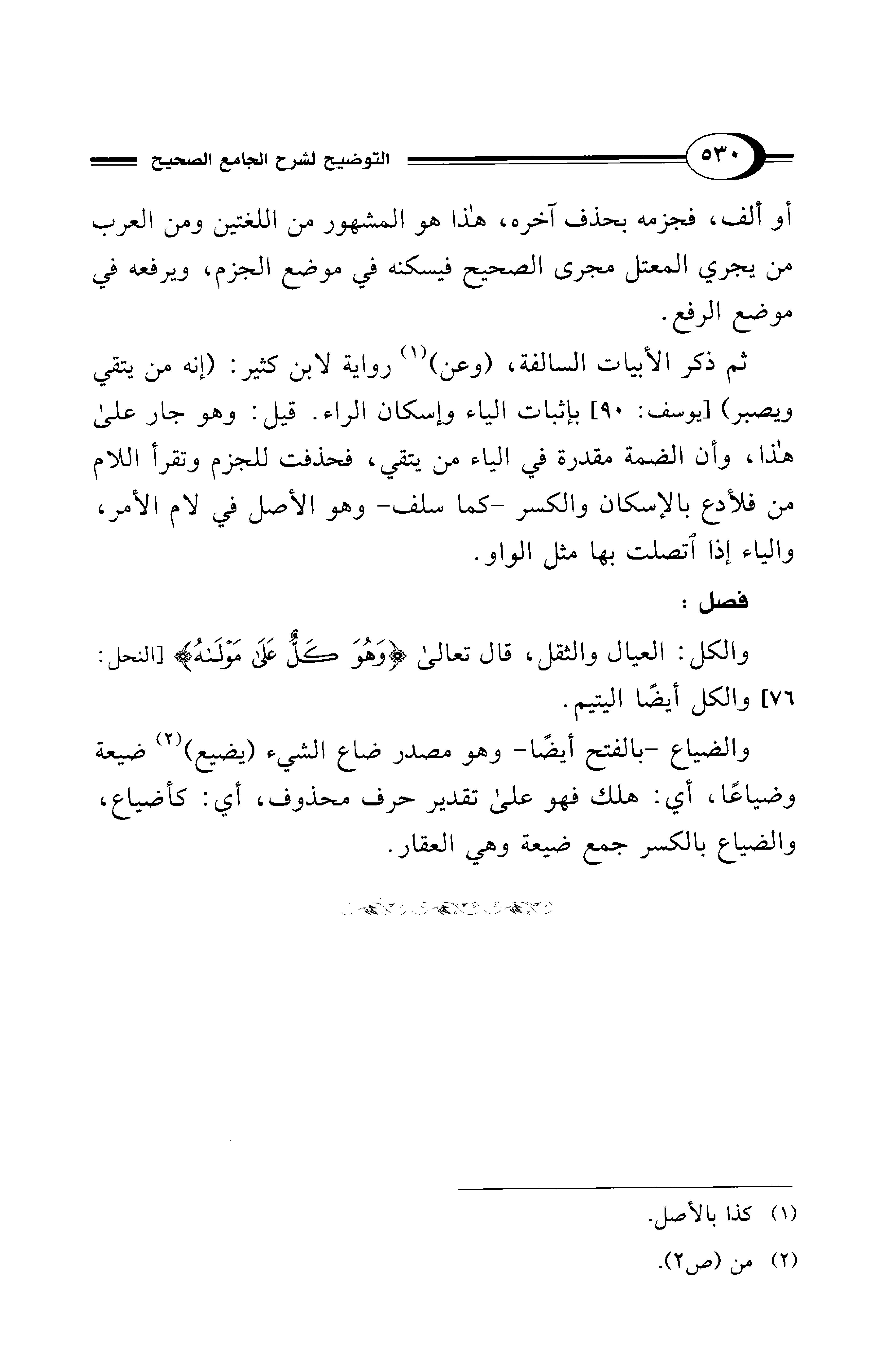 أو ألف، فجزمه بحذف آخره، هذا هو المشهور من اللغتين ومن العرب من يجري المعتل مجرى الصحيح فيسكنه في موضع الجزم، ويرفعه في موضع الرفع.