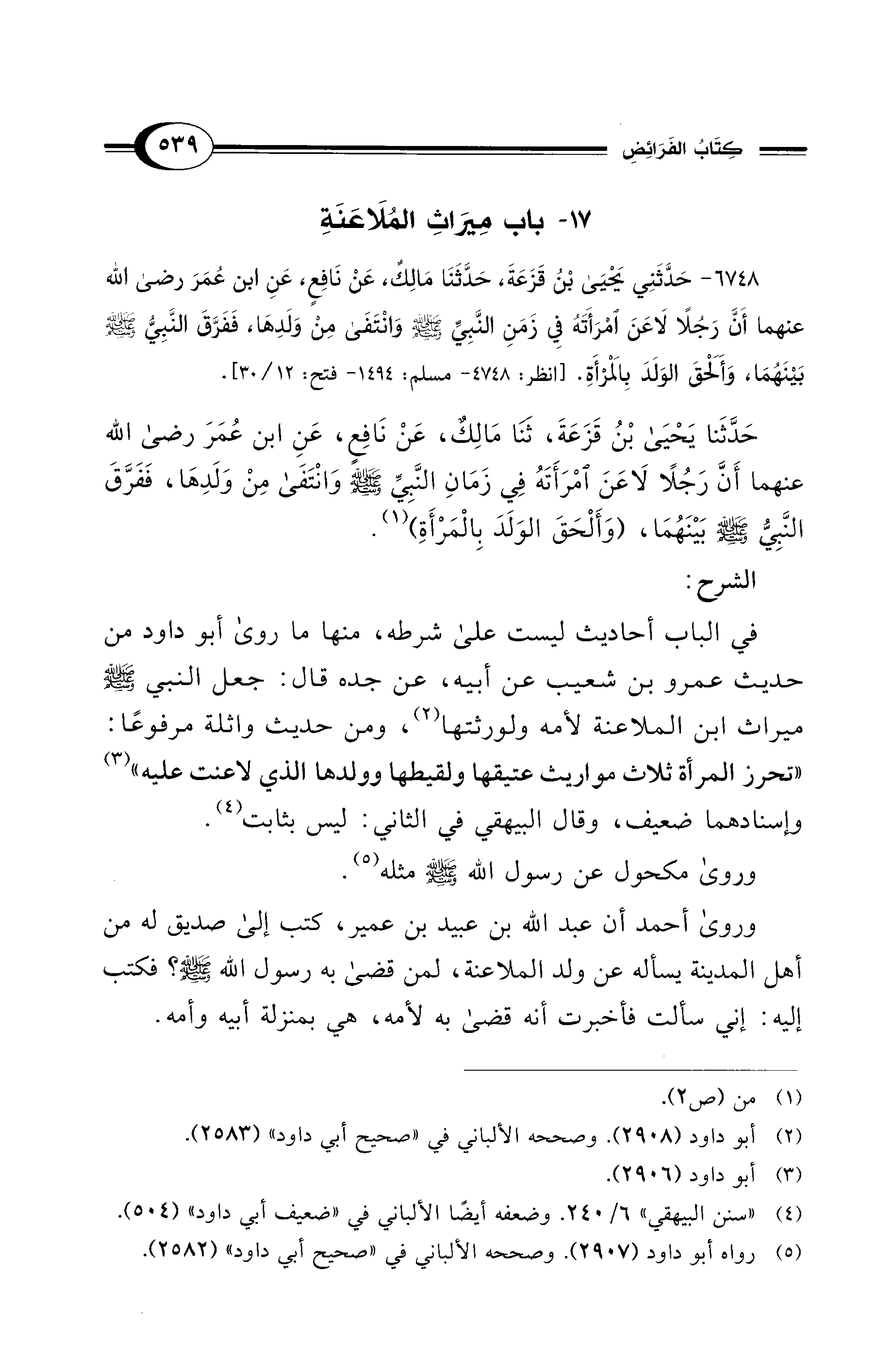 17 - باب مِيرَاثِ المُلاَعَنَةِ
