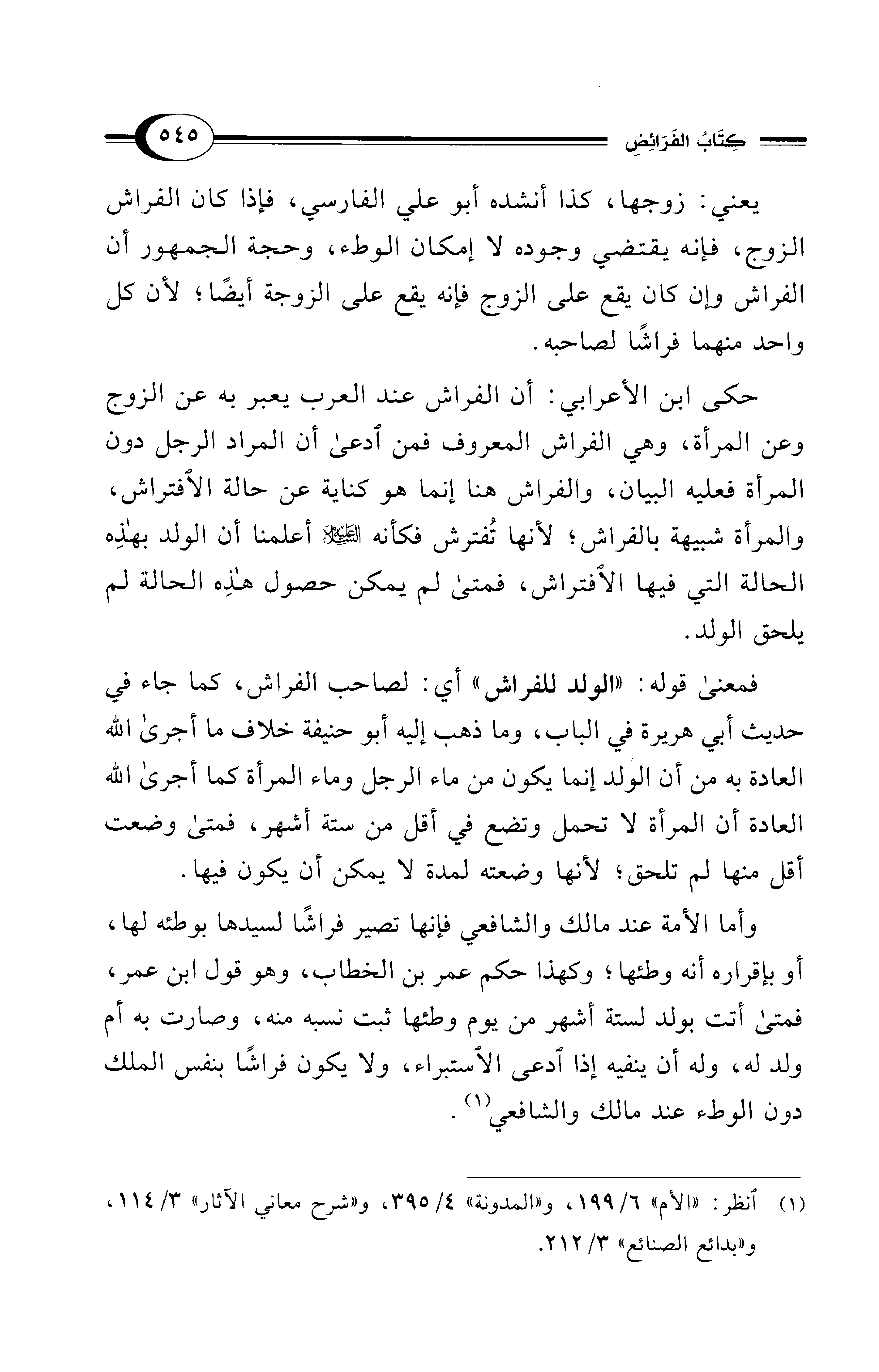 حكى ابن الأعرابي: أن الفراش عند العرب يعبر به عن الزوج وعن المرأة، وهي الفراش المعروف فمن ادعى أن المراد الرجل دون المرأة فعليه البيان، والفراش هنا إنما هو كناية عن حالة الافتراش، والمرأة شبيهة بالفراش؛ لأنها تُفترش فكأنه - عليه السلام - أعلمنا أن الولد بهذِه الحالة التي فيها الافتراش، فمتى لم يمكن حصول هذِه الحالة لم يلحق الولد.