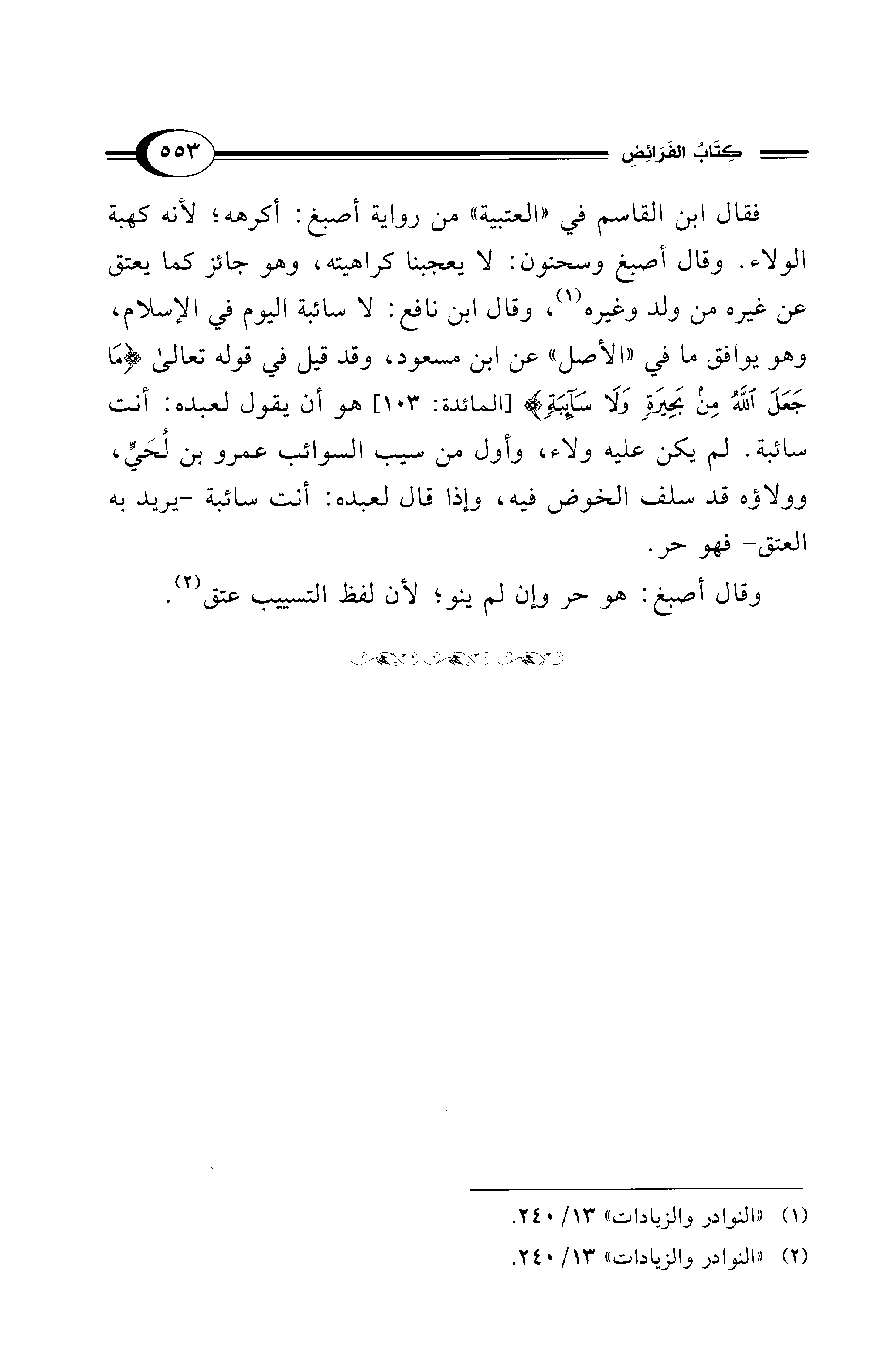 (¬2) "النوادر والزيادات" 13/ 240.