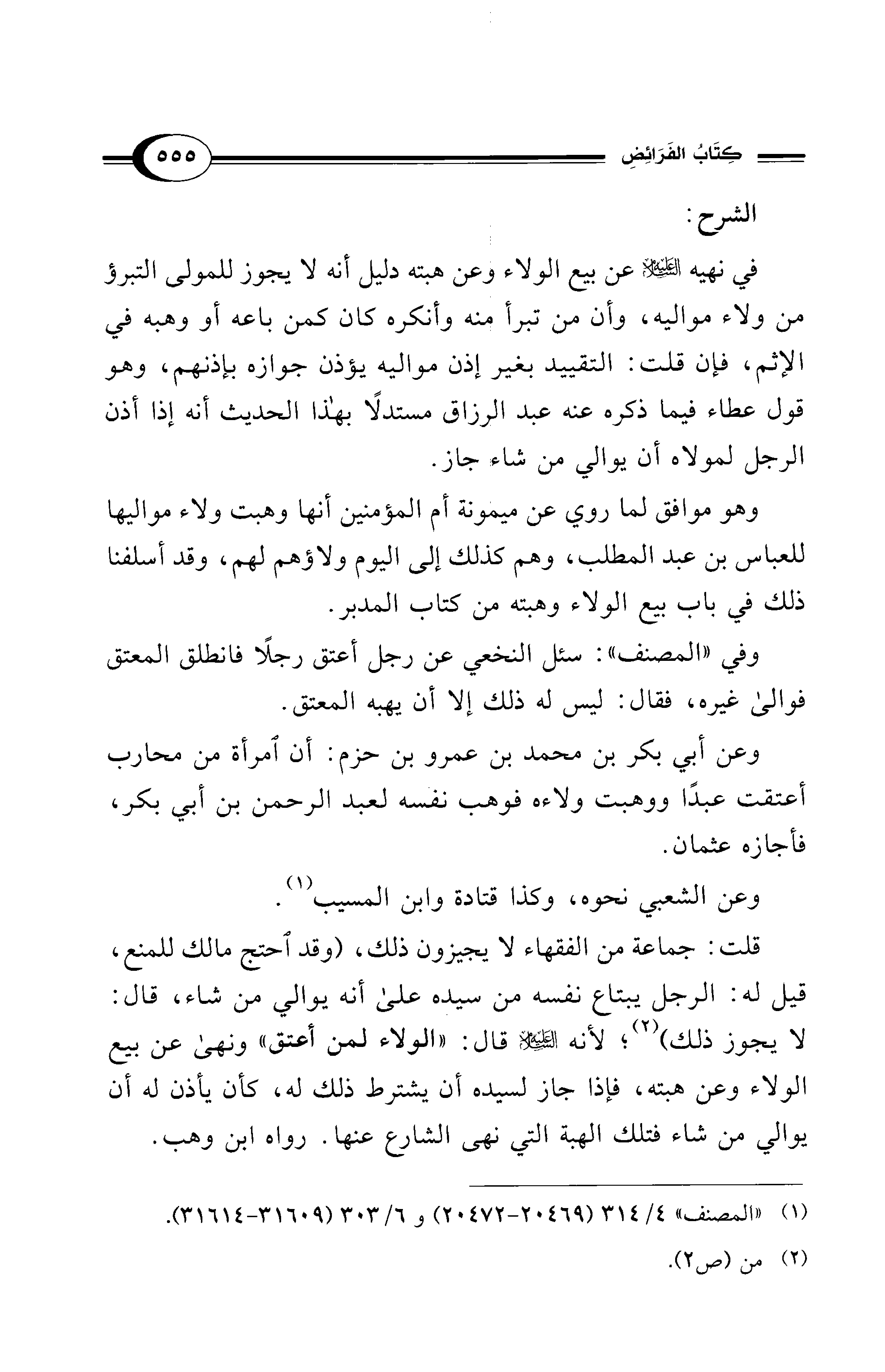 وعن أبي بكر بن محمد بن عمرو بن حزم: أن امرأة من محارب أعتقت عبدًا ووهبت ولاءه فوهب نفسه لعبد الرحمن بن أبي بكر، فأجازه عثمان.