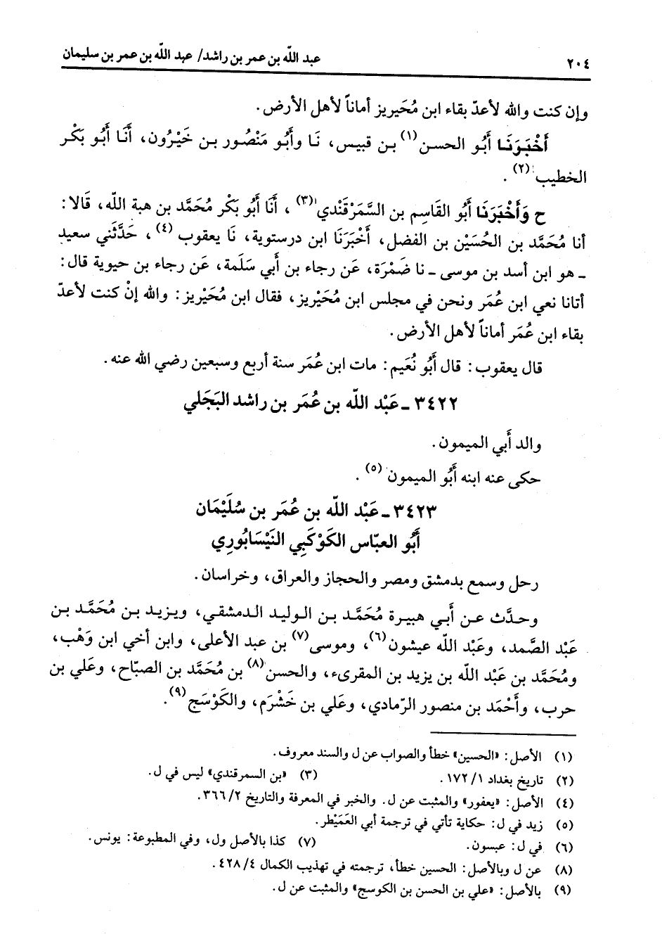 3422 - عبد الله بن عمر بن راشد البجلي والد أبي الميمون حكى عنه ابنه الميمون (5)