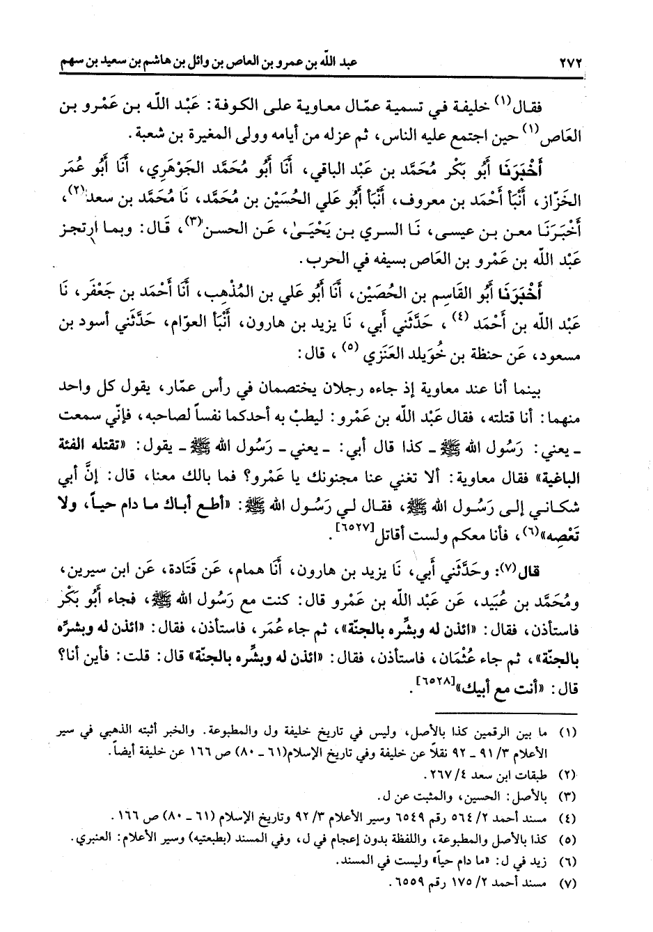 (4) مسند أحمد 2 / 564 رقم 6549 وسير الاعلام 3 / 92 وتاريخ الاسلام (61 - 80) ص 166