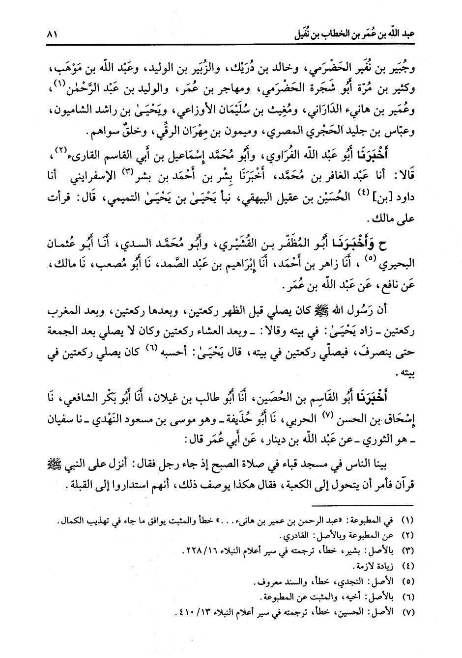 (7) الاصل: الحسين خطأ ترجمته في سير أعلام النبلاء 13 / 410