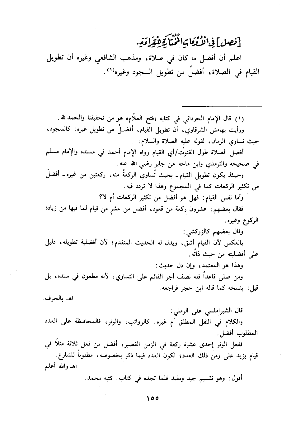 اعلم أن أفضل القراءة ما كان في الصلاة ومذهب الشافعي وغيره أن تطويل القيام في الصلاة أفضل من تطويل السجود وغيره