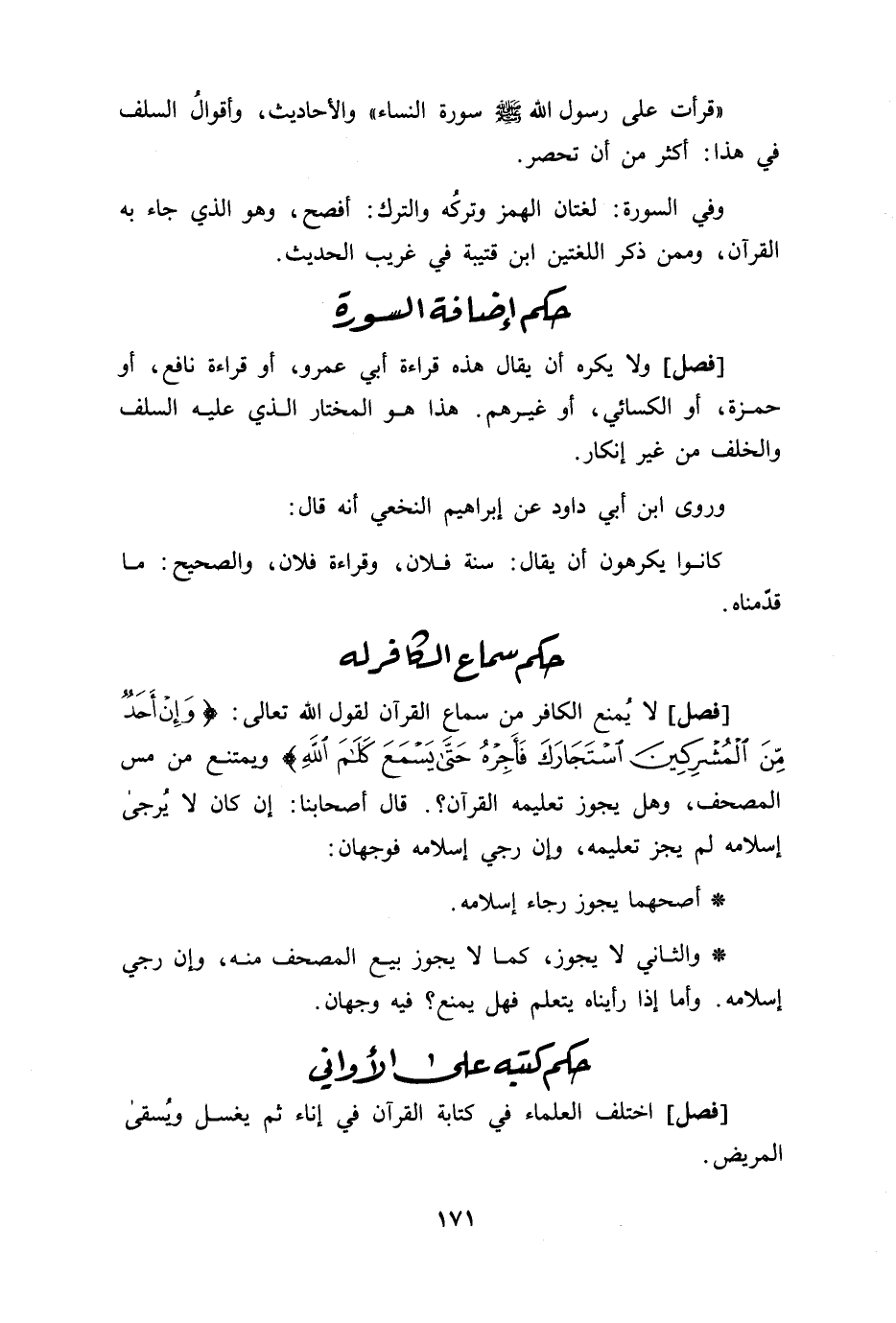 [فصل] اختلف العلماء في كتابة القرآن في إناء ثم يغسل ويسقى المريض
