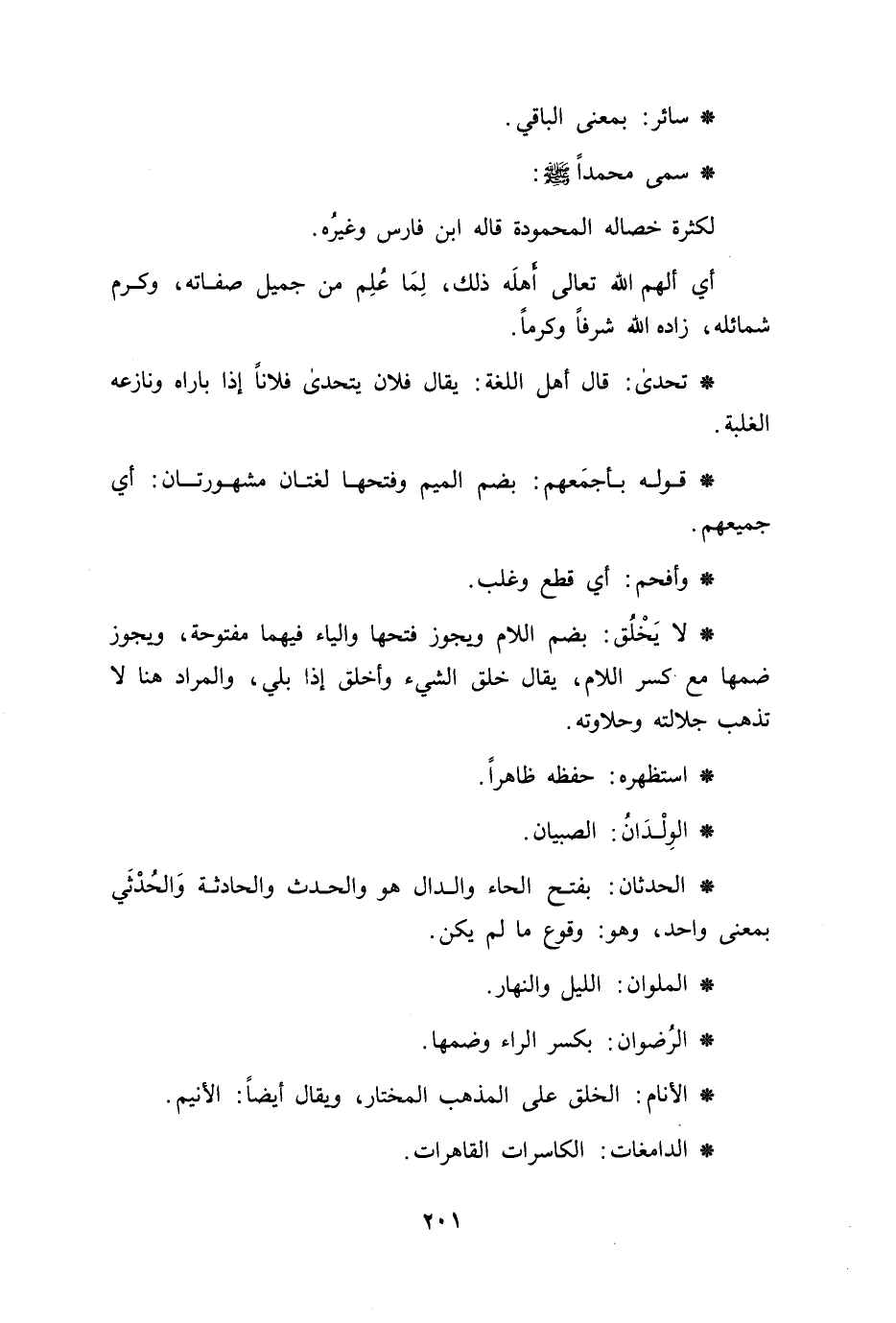 * لا يخلق بضم اللام ويجوز فتحها والياء فيهما مفتوحة ويجوز ضمها مع كسر اللام يقال خلق الشئ وأخلق إذا بلي والمراد هنا لا تذهب جلالته وحلاوته