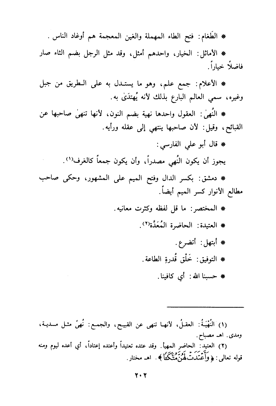 * النهى العقول واحدها نهية بضم النون لأنها تنهى صاحبها عن القبائح وقيل لأن صاحبها ينتهي الى عقله ورأيه
