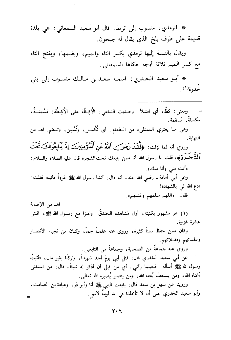 * أبو سعيد الخدري اسمه سعد بن مالك منسوب إلى بني خدرة