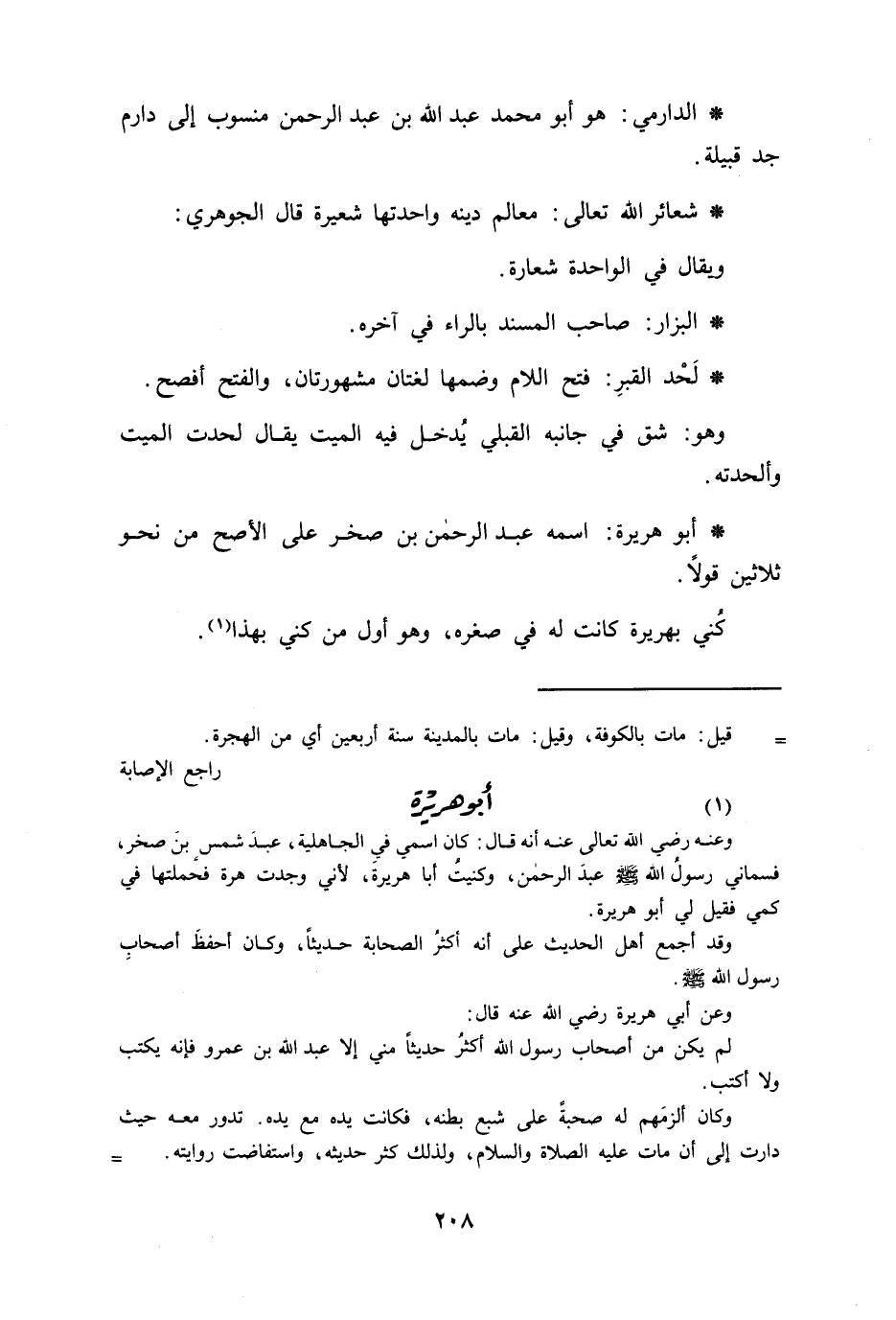 * أبو هريرة اسمه عبد الرحمن بن صخر على الأصح من نحو ثلاثين قولا كني بهريرة وسلم كانت له في صغره وهو أول من كني بهذا