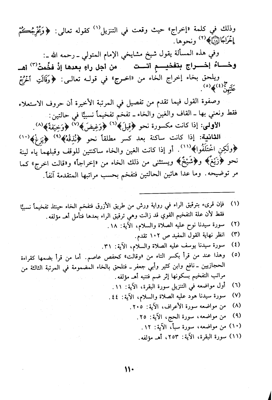وذلك في كلمة "إخراج" حيث وقعت في التنزيل كقوله تعالى: {وَيُخْرِجُكُمْ إِخْرَاجاً} [نوح: 18] ونحوها.