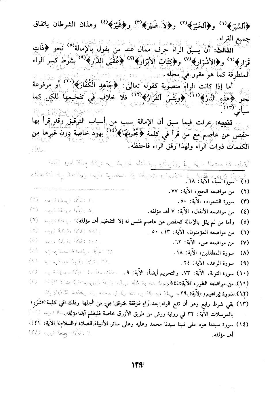 هذا: وما تقدم ذكره من شروط للتفخيم والترقيق في الراء المتحركة مطلقاً والساكنة في الحالين سواء توسطت أو تطرفت والساكنة في الوقف دون الوصل