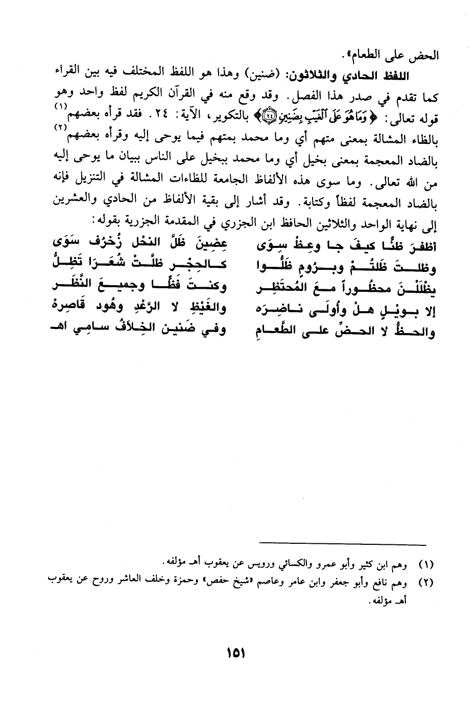 الحضِّ على الطَّعامِ ... وفي ضَنين الخِلاَفُ سامِي اهـ