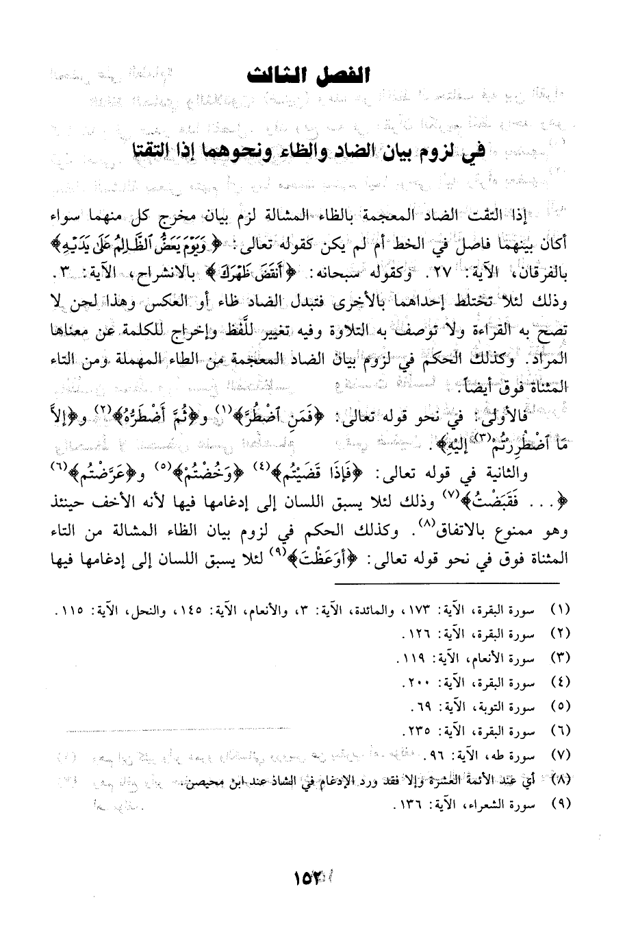 الفصل الثالث / في لزوم بيان حرف الضاد المعجم من الظاء المشال ونحوهما إذا التقيا