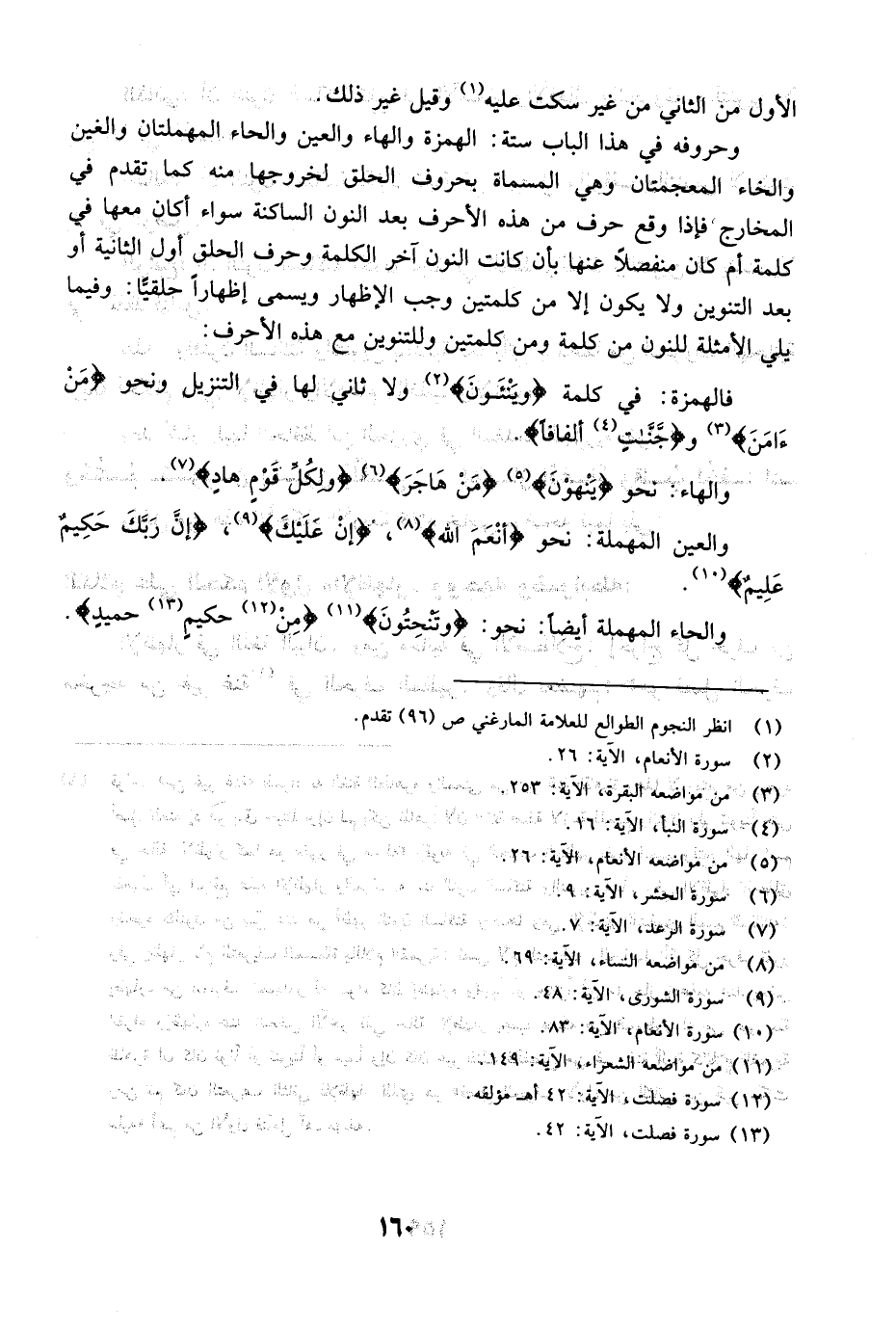 والعين المهملة: نحو {أَنْعَمَ الله} [النساء: 69] ، {إِنْ عَلَيْكَ} [الشورى: 48] ، {إِنَّ رَبَّكَ حَكِيمٌ عَلِيمٌ} [الأنعام: 83] .