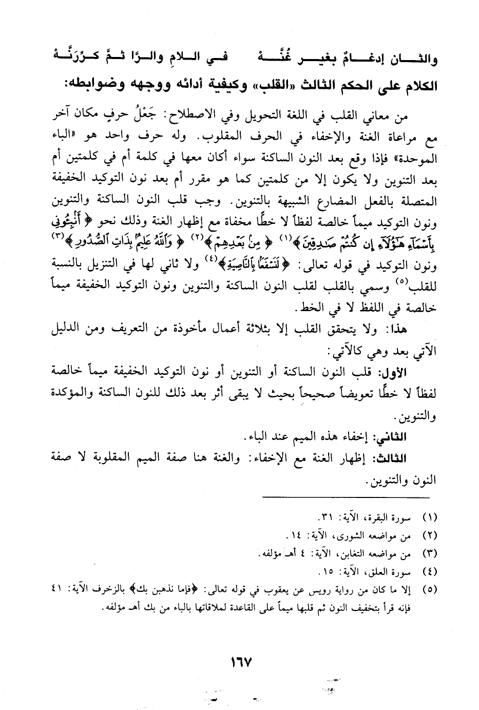 الكلام على الحكم الثالث "القلب" وكيفية أدائه ووجهه وضوابطه