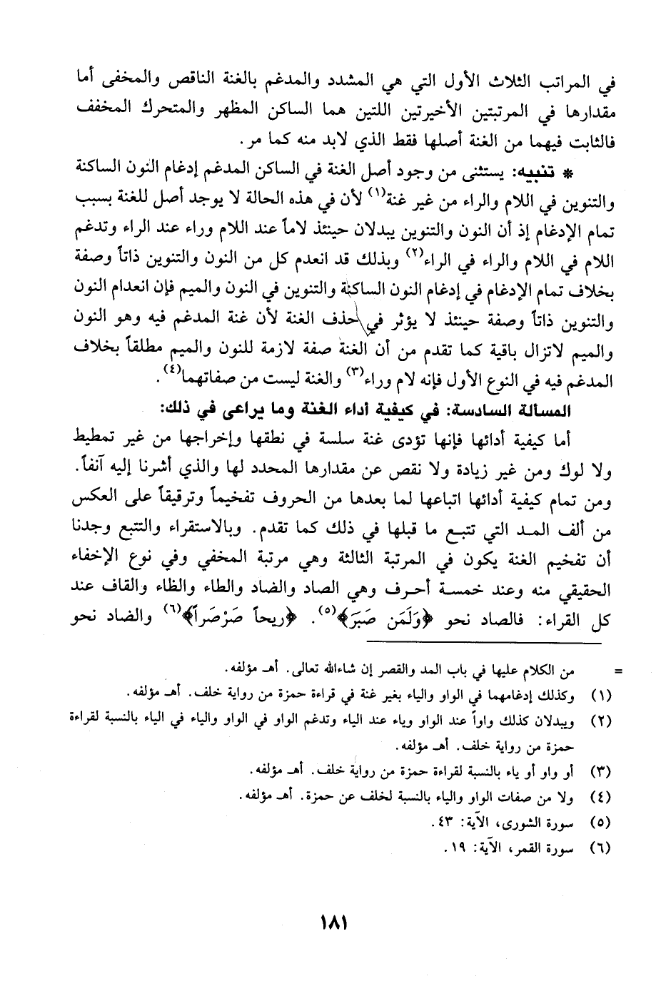 المسألة السادسة: في كيفية أداء الغنة وما يراعى في ذلك: