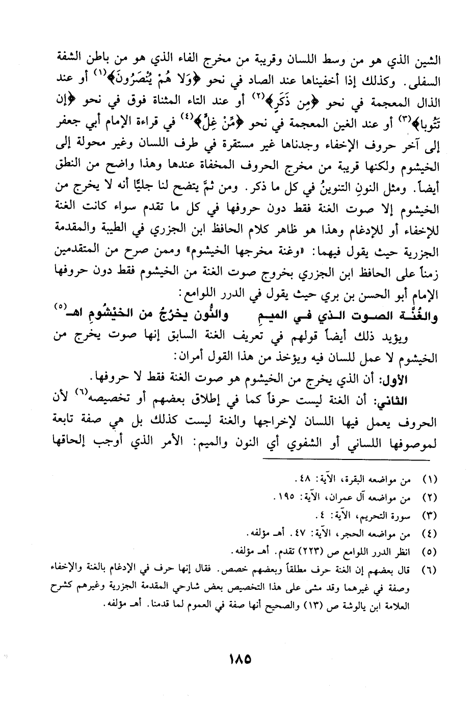 الأول: أن الذي يخرج من الخيشوم هو صوت الغنة فقط لا حروفها.
