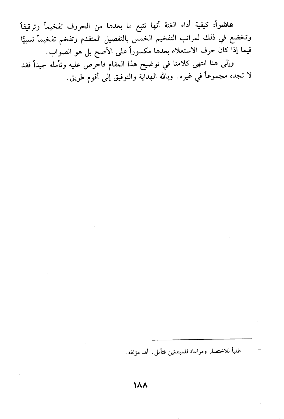 وإلى هنا انتهى كلامنا في توضيح هذا المقام فاحرص عليه وتأمله جيداً فقد لا تجده مجموعاً في غيره. وبالله الهداية والتوفيق إلى أقوم طريق.