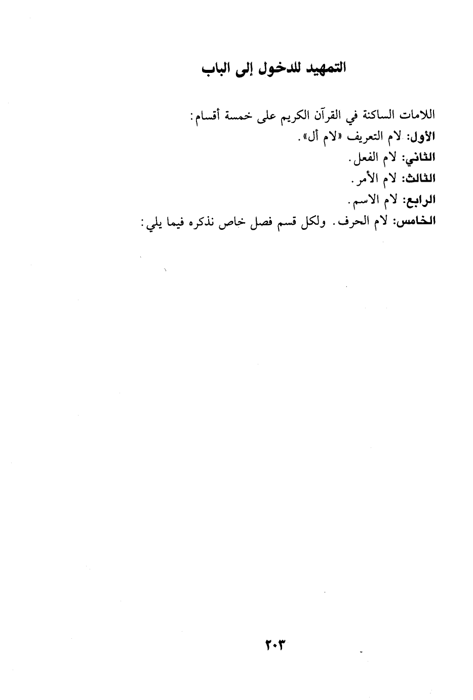 الخامس: لام الحرف. ولكل قسم فصل خاص نذكره فيما يلي: