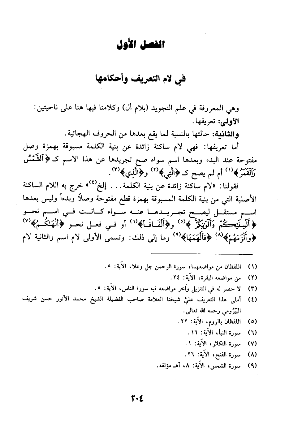 وهي المعروفة في علم التجويد (بلام أل) وكلامنا فيها هنا على ناحيتين: