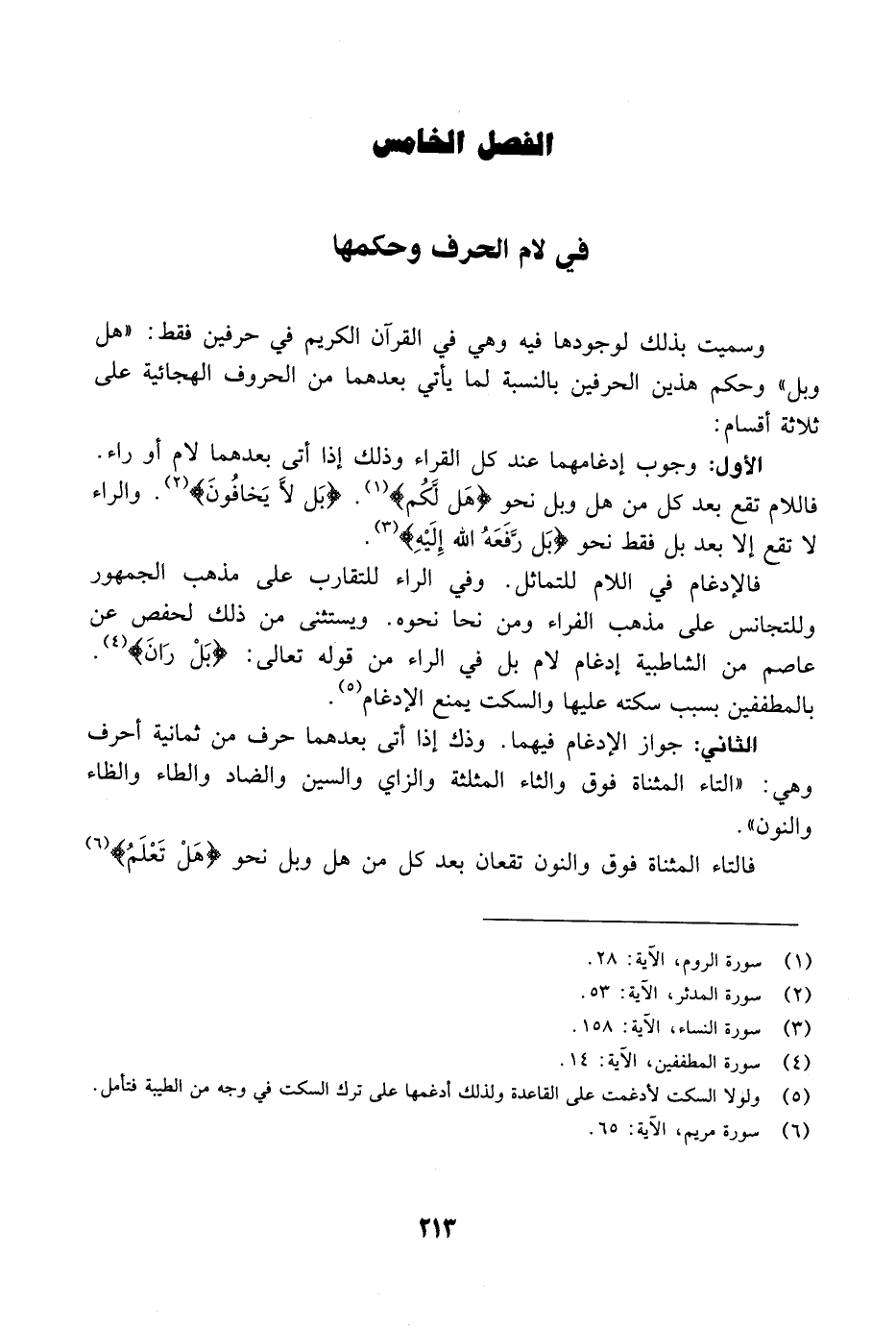 الفصل الخامس / في لام الحرف وحكمها