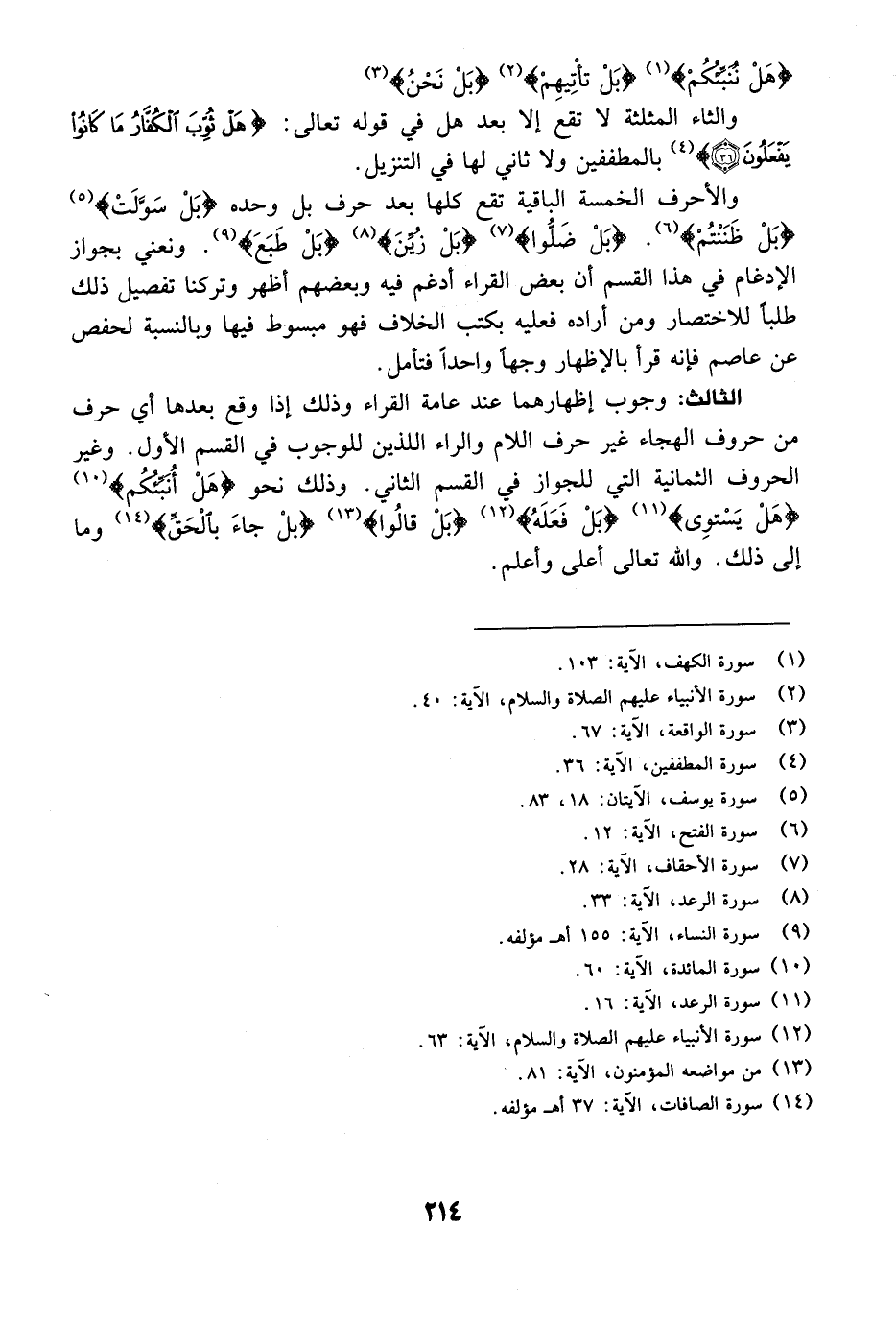 هَلْ نُنَبِّئُكُم} [الكهف: 103] {بَلْ تَأْتِيهِم} [الأنبياء: 40] {بَلْ نَحْنُ} [الواقعة: 67] .