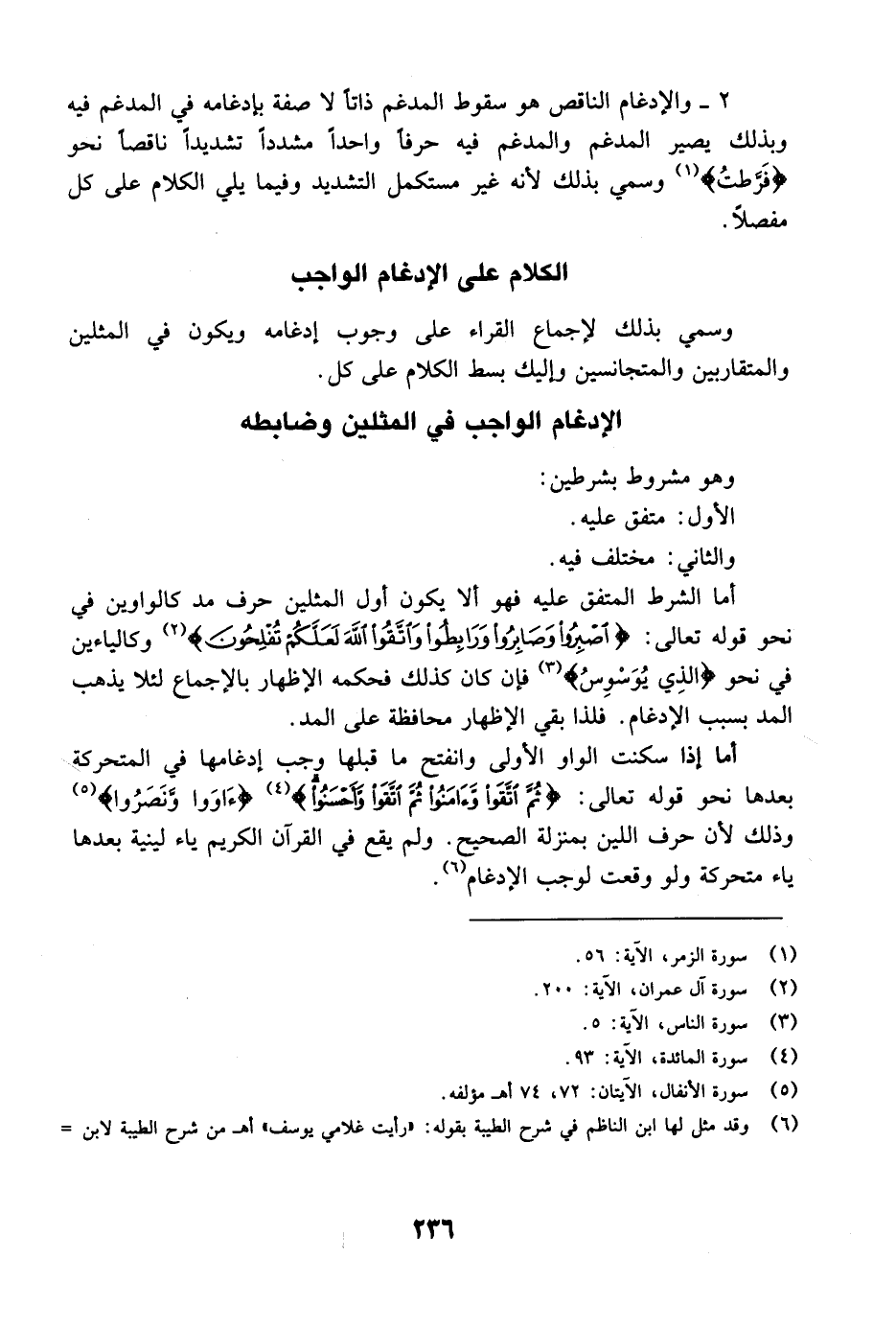 وسمي بذلك لإجماع القراء على وجوب إدغامه ويكون في المثلين والمتقاربين والمتجانسين وإليك بسط الكلام على كل.