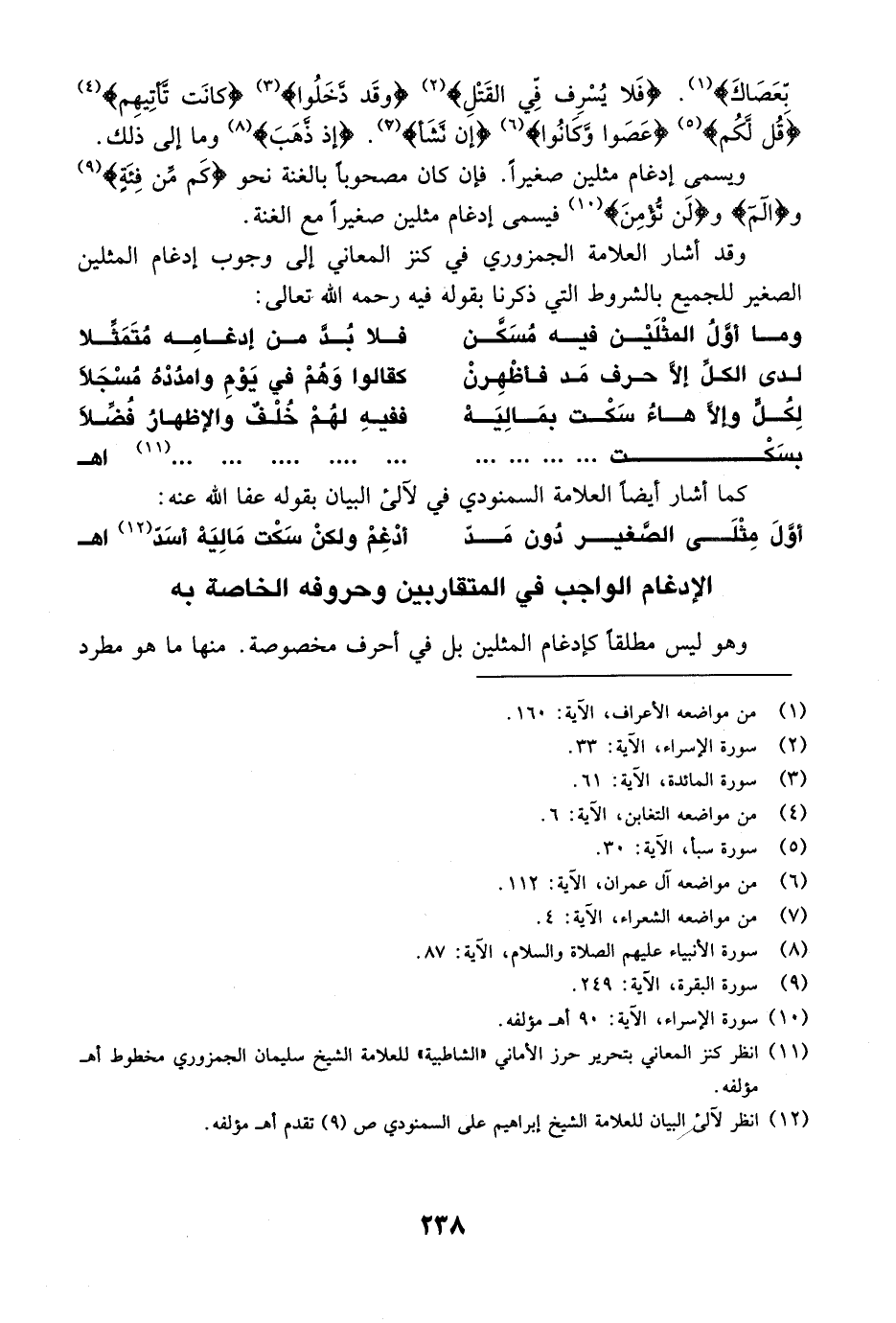 كما أشار أيضاً العلامة السمنودي في لآلىء البيان بقوله عفا الله عنه: