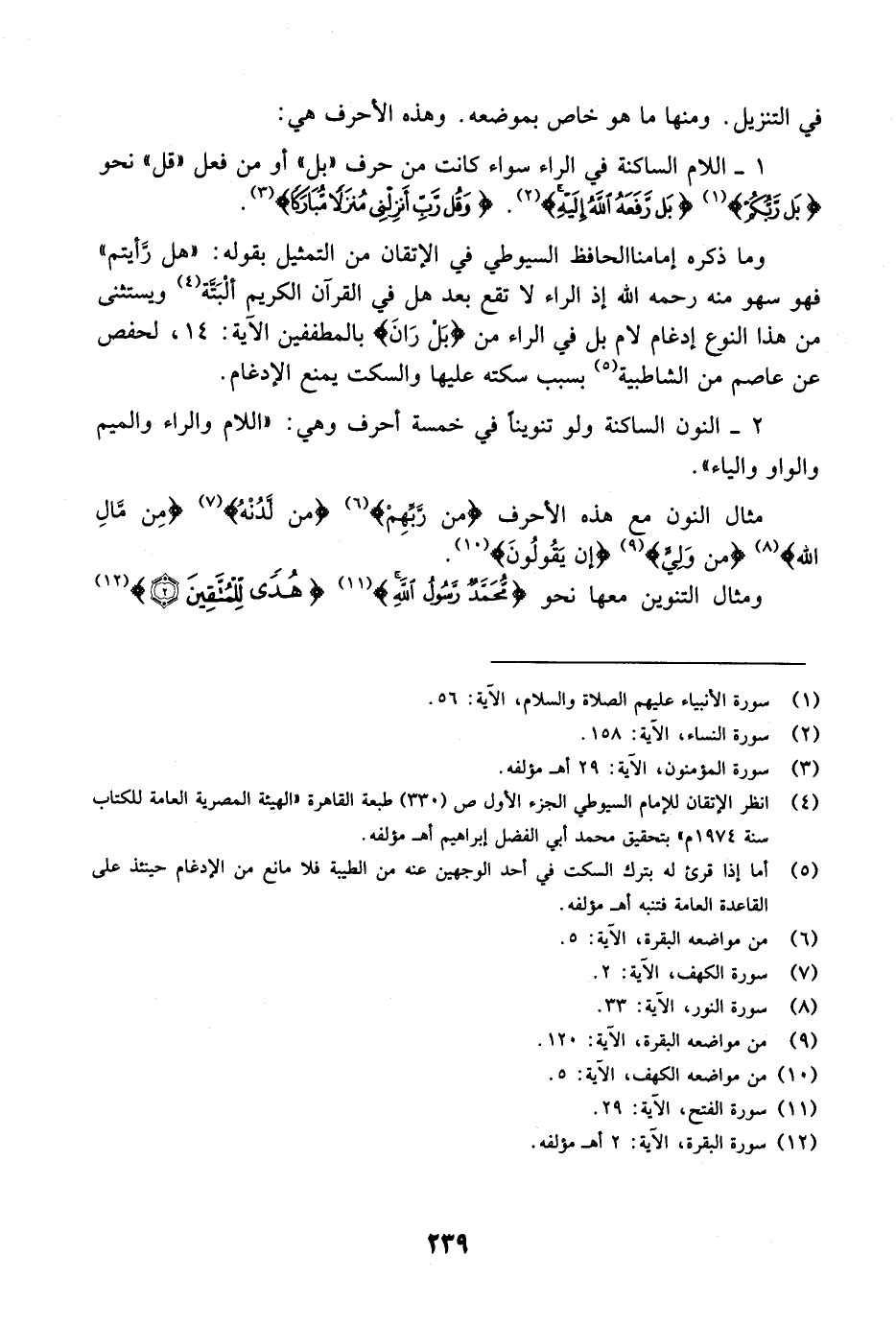 1- اللام الساكنة في الراء سواء كانت من حرف "بل" أو من فعل "قل" نحو {بَل رَّبُّكُمْ} [الأنبياء: 56] {بَل رَّفَعَهُ الله إِلَيْهِ} [النساء: 158] . {وَقُل رَّبِّ أَنزِلْنِي مُنزَلاً مُّبَارَكاً} [المؤمنون: 29] .