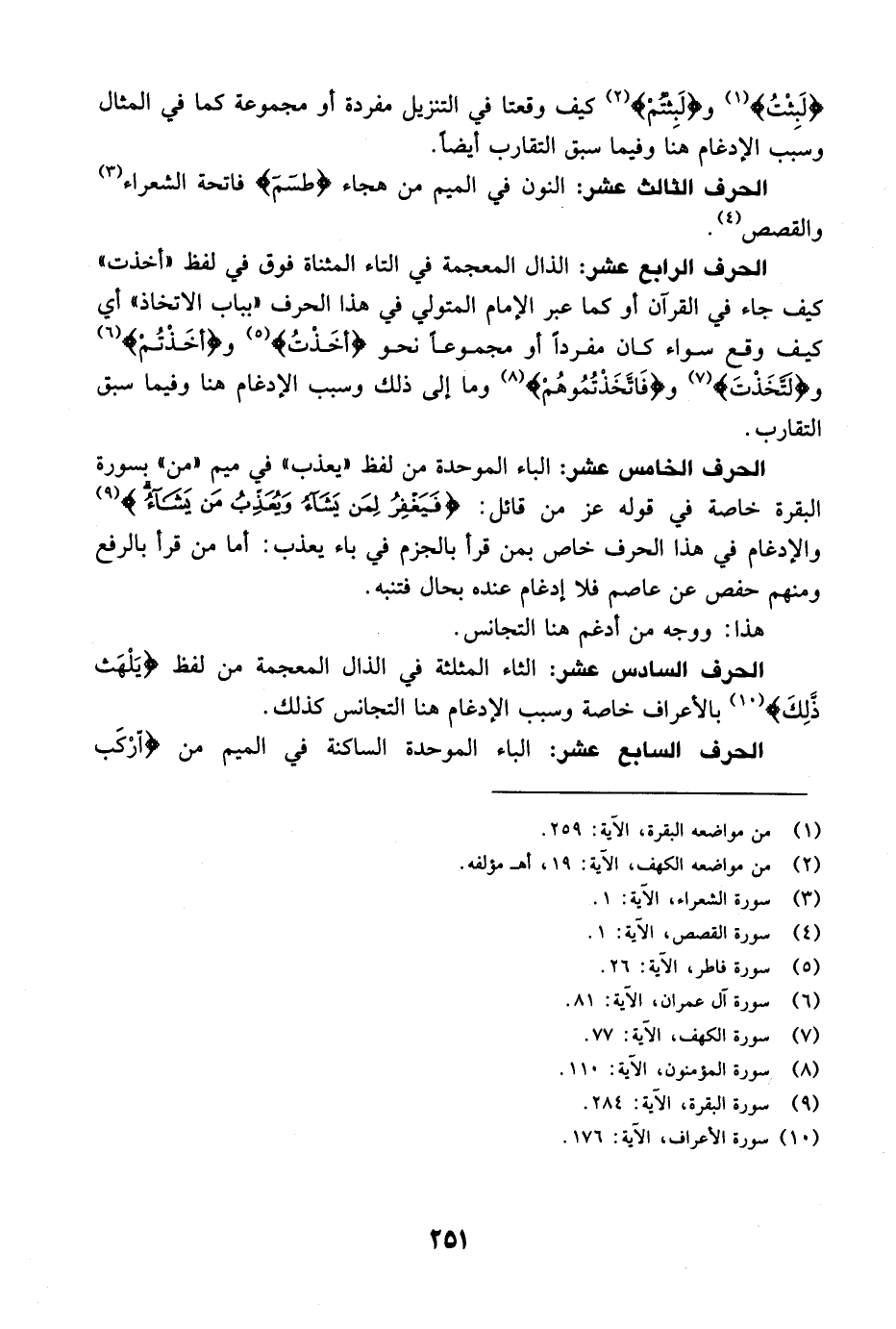 الحرف الثالث عشر: النون في الميم من هجاء {طسم} [الشعراء: 1] فاتحة الشعراء والقصص.