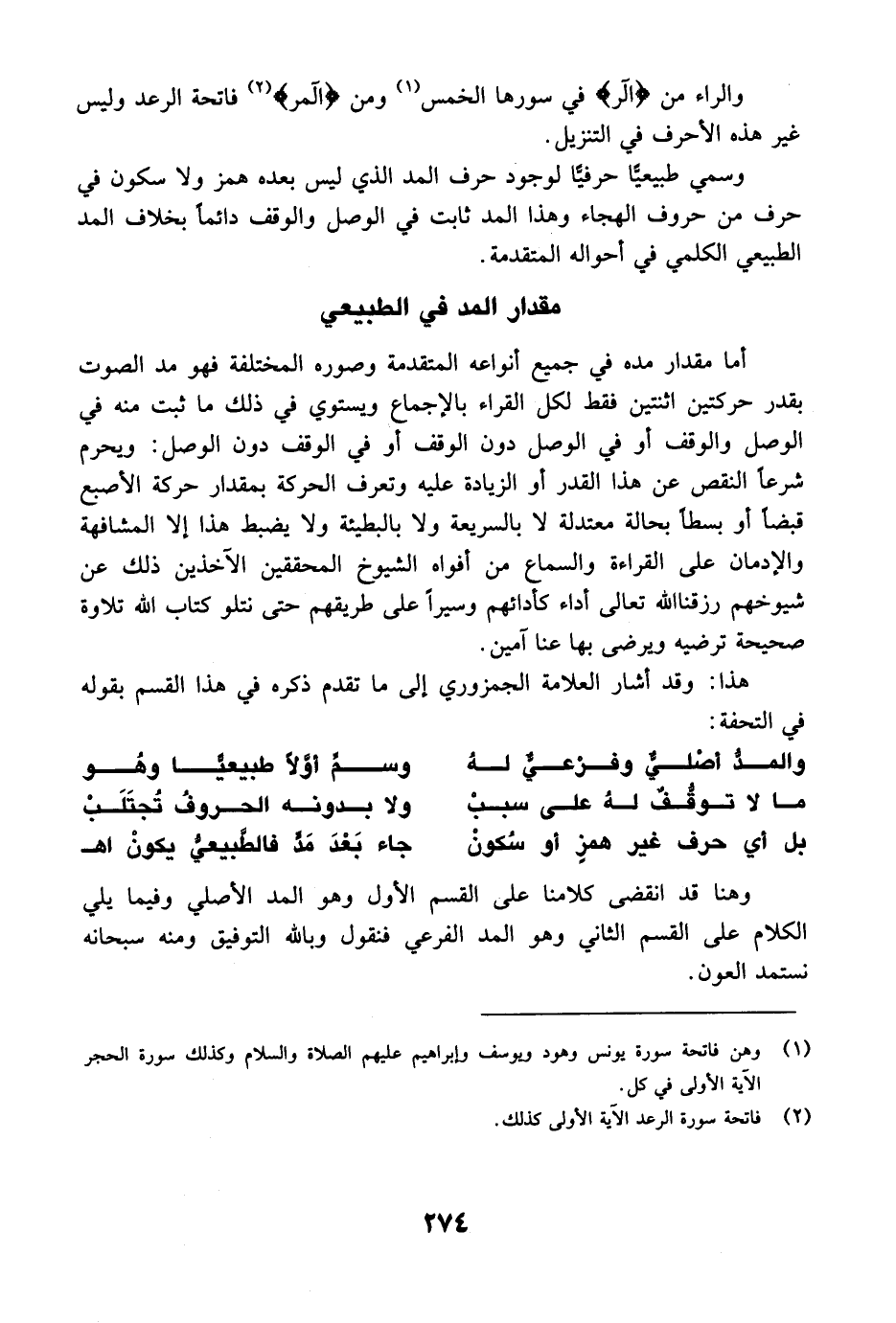 وهنا قد انقضى كلامنا على القسم الأول وهو المد الأصلي وفيما يلي الكلام على القسم الثاني وهو المد الفرعي فنقول وبالله التوفيق ومنه سبحانه نستمد العون.