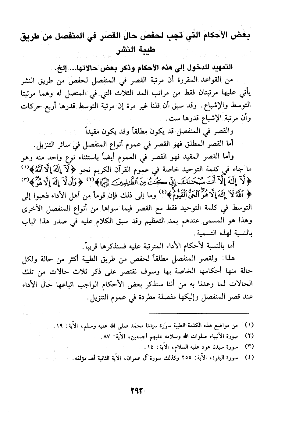 الحالة الأولى: من حالات القصر وهي القصر المطلق في المد المنفصل مع التوسط في المد المتصل لحفص من طريق الطيبة من كتاب "المصباح" في القراءات العشر مخطوط للشهرزُوري من طريق الحمامي عن الوَليّ عن الفيل عن عمرو عن حفص.