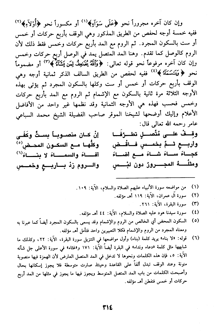 ومرتبة الإشباع هذه قلنا عليها فيما سبق أنها لا تجوز لحفص من طريق الشاطبية التي هي طريق العامة. وإنما تجوز له في وجه من الطيبة. ولم ينبه الدكتور على ذلك ولا على ما يتعين عليها من أحكام حال الأداء ولا بد من هذا التنبيه. وقد بينا خطأ هذا القول وإقحامه على ما عرفه عامة الناس واستوفينا الرد عليه فيما تقدم بما لا مزيد عليه لمستزيد فراجعه في موضعه في التنبيه الثالث ص (284)