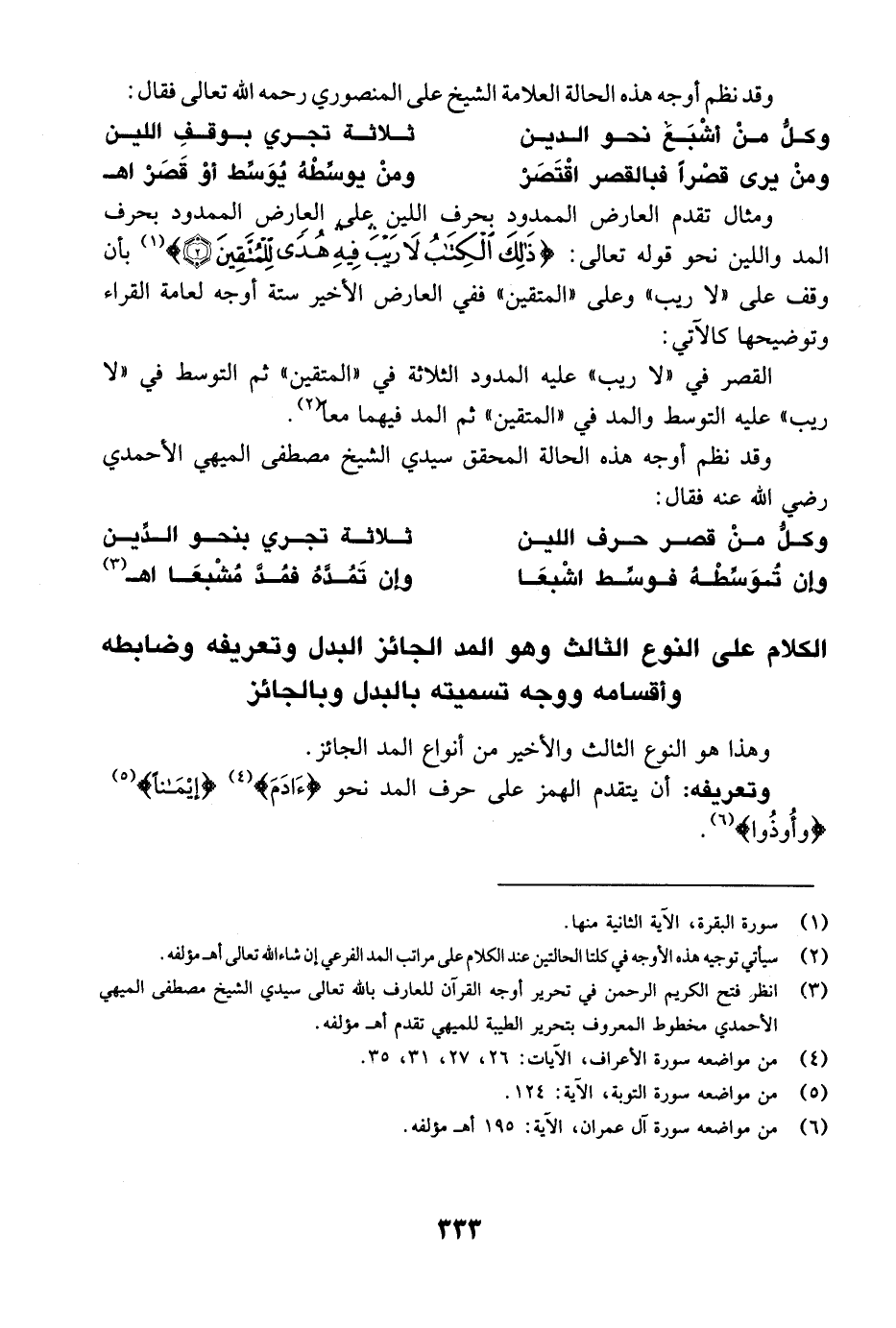 وكلُّ منْ قصر حرف اللين ... ثلاثة تجري بنحو الدِّين