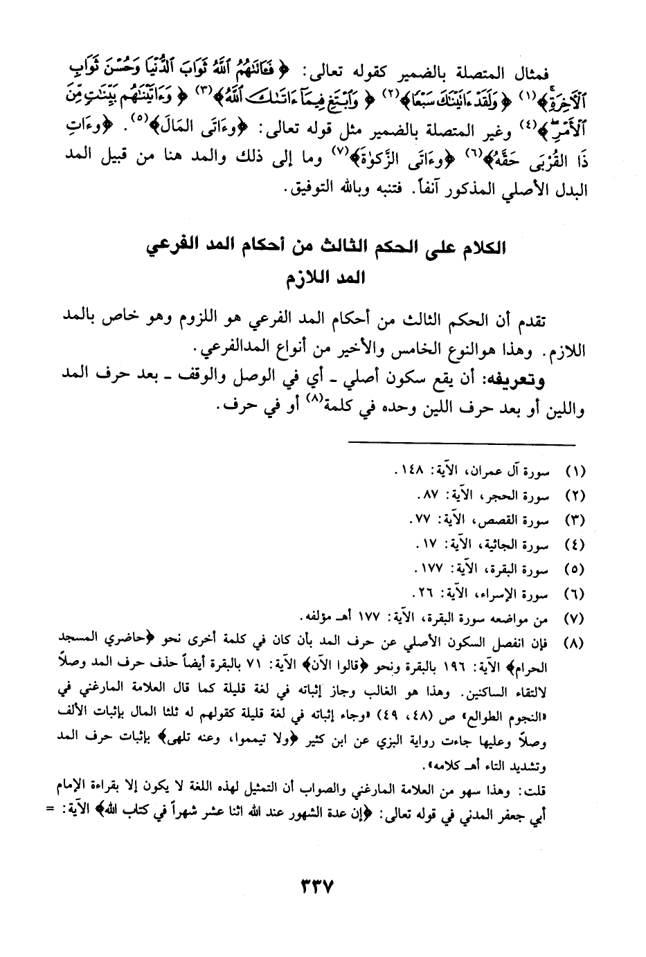 الكلام على الحكم الثالث من أحكام المد الفرعي المد اللازم