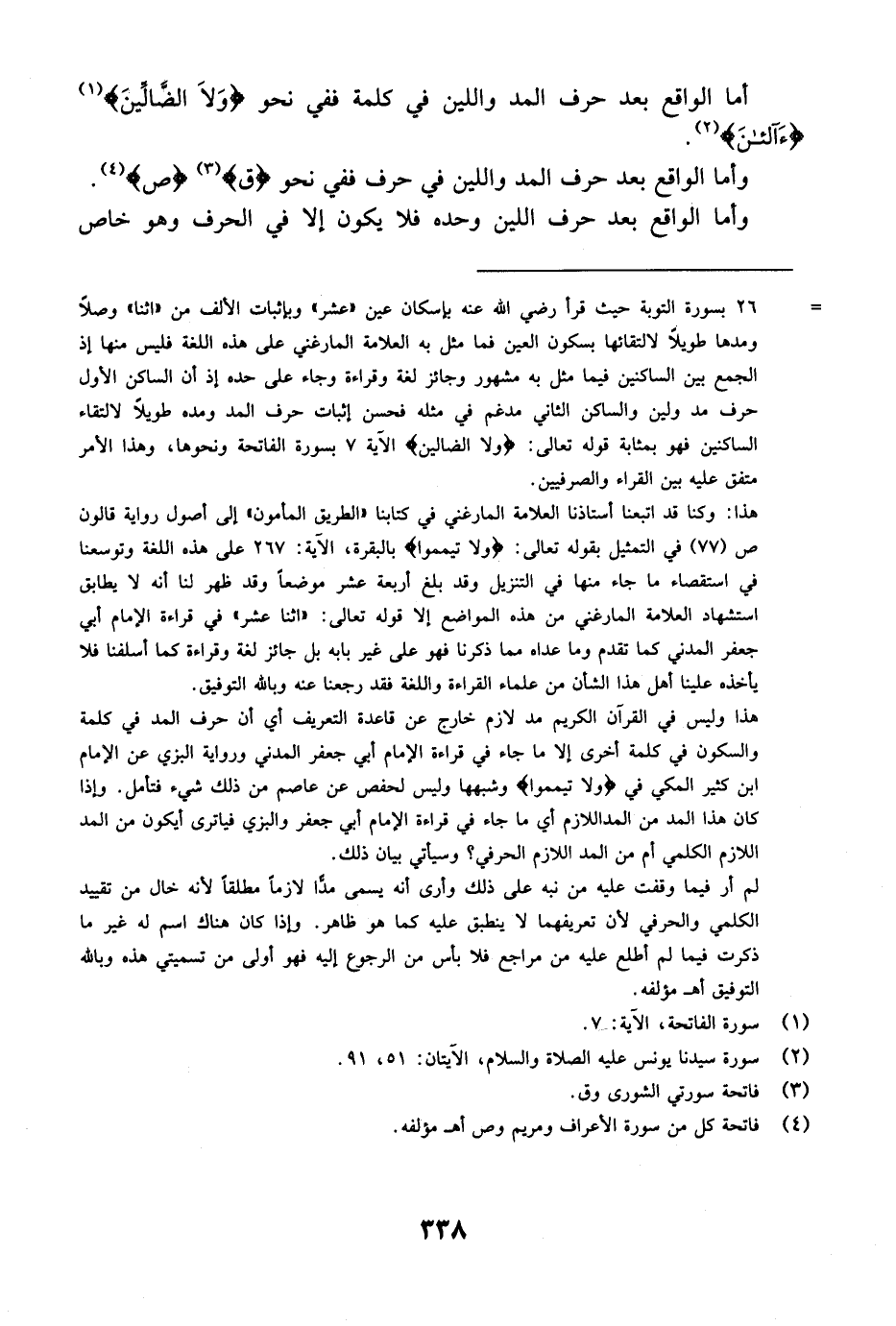 أما الواقع بعد حرف المد واللين في كلمة ففي نحو {وَلاَ الضآلين} [الفاتحة: 7] {آلآنَ} [يونس: 51، 91] .