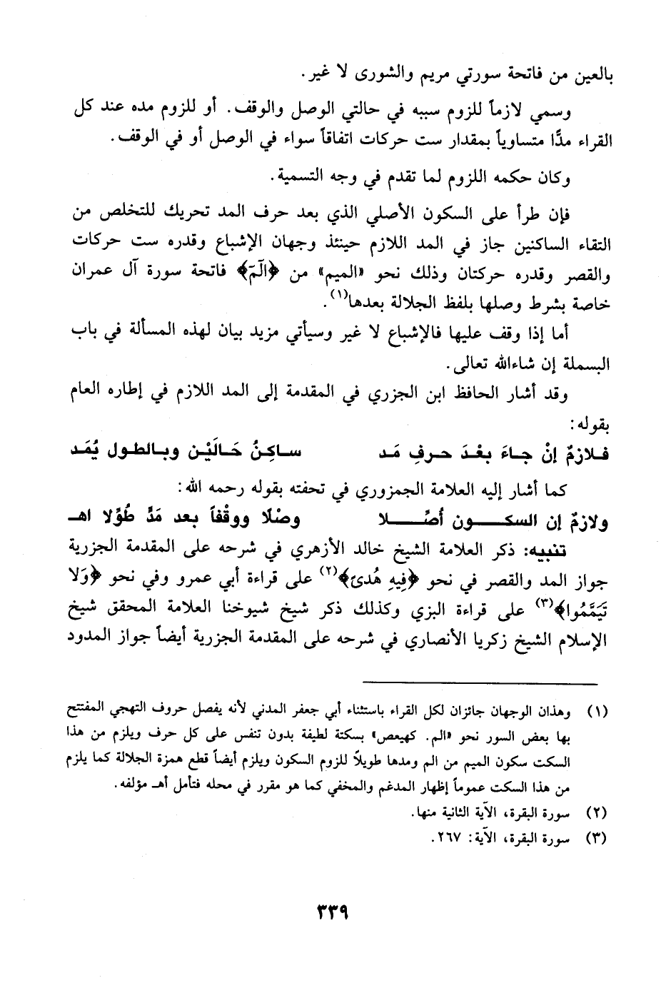 وقد أشار الحافظ ابن الجزري في المقدمة إلى المد اللازم في إطاره العام بقوله: